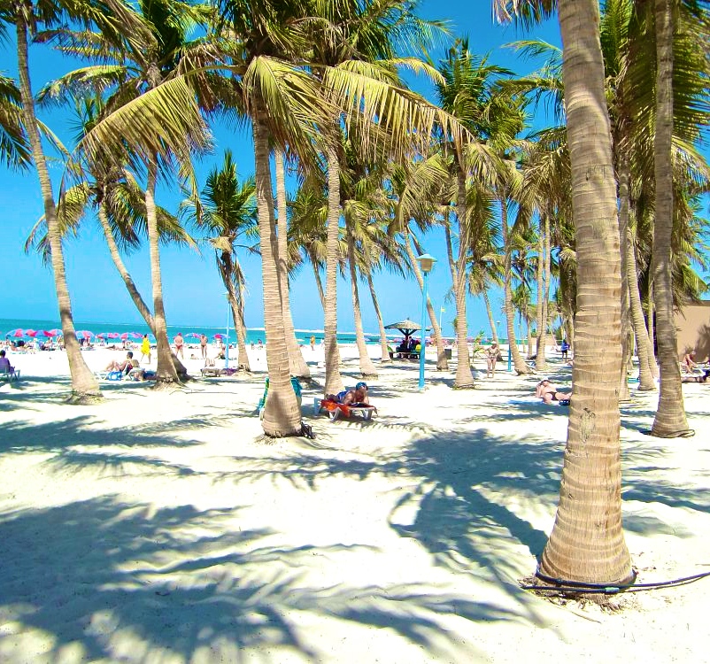 Itse ranta on kaunis, vaaleahiekkainen ja merivesi ihanan läpinäkyvän turkoosi eikä aallokko ollut kovin kova ainakaan sinä päivänä. Negatiivista oli väenpaljous ja se, että alue oli luonnollisestikin aidattu, kun oli maksullinen ranta kyseessä. Eipä siinä muuta, mutta aidat olivat rumat peltiaidat ja kun kävimme kävelemässä toisella aidalla, näimme sen kurjan jaon rikkaiden ja köyhien välillä.