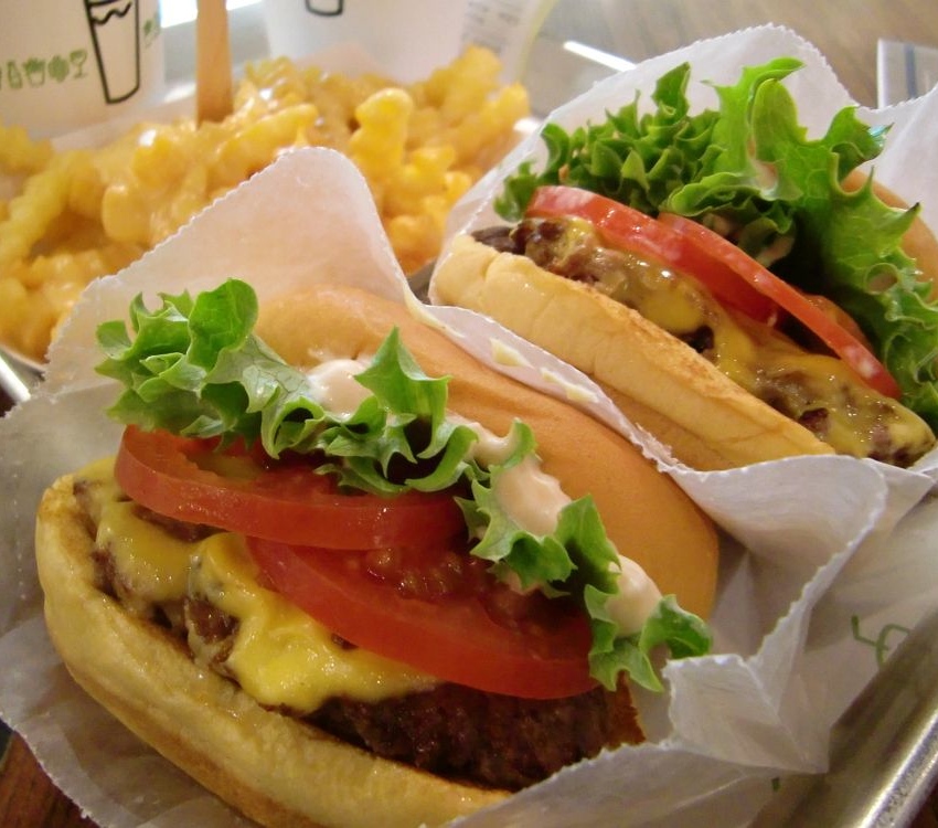 Etukäteiskuolailun kohde, Shake Shackin ihana, mehevä hampurilainen. Tämä kyseinen yksilö on juustohampurilainen, jossa ei ole sitä hyvää kastiketta, mitä on Shack Burgerissa, mutta muutoin erittäin hyvä. Juustoranskalaiset maistui tälläkin kertaa!