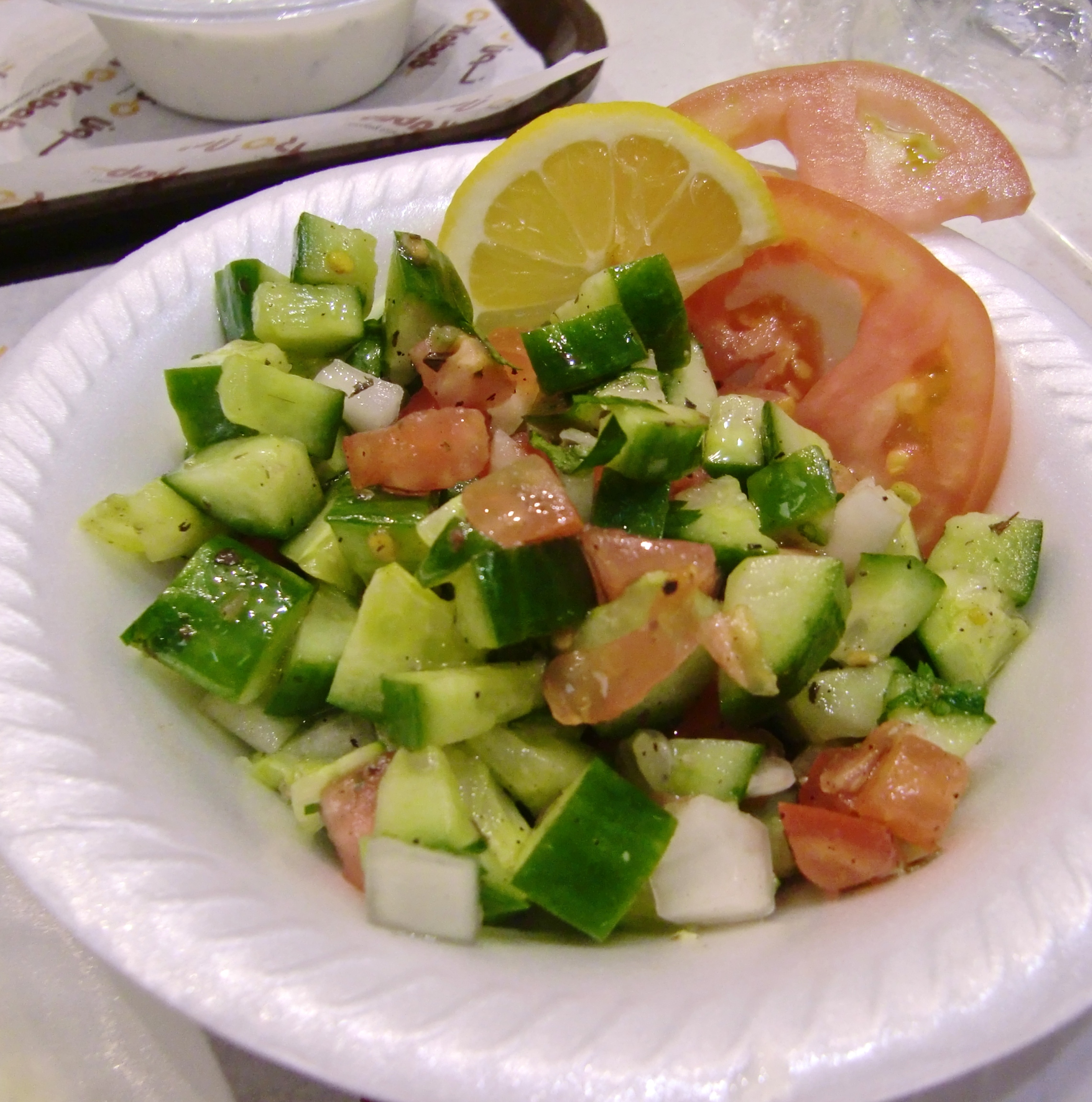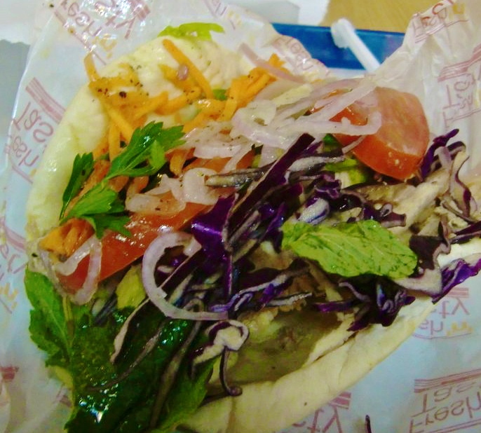 Kana- ja lammasvarrasta, kolmea erilaista riisiä, kasviksia, persiljaista salaattia ja jugurttikastiketta, todella hyvä vaihtoehto ostoskeskuksen food courtissa.