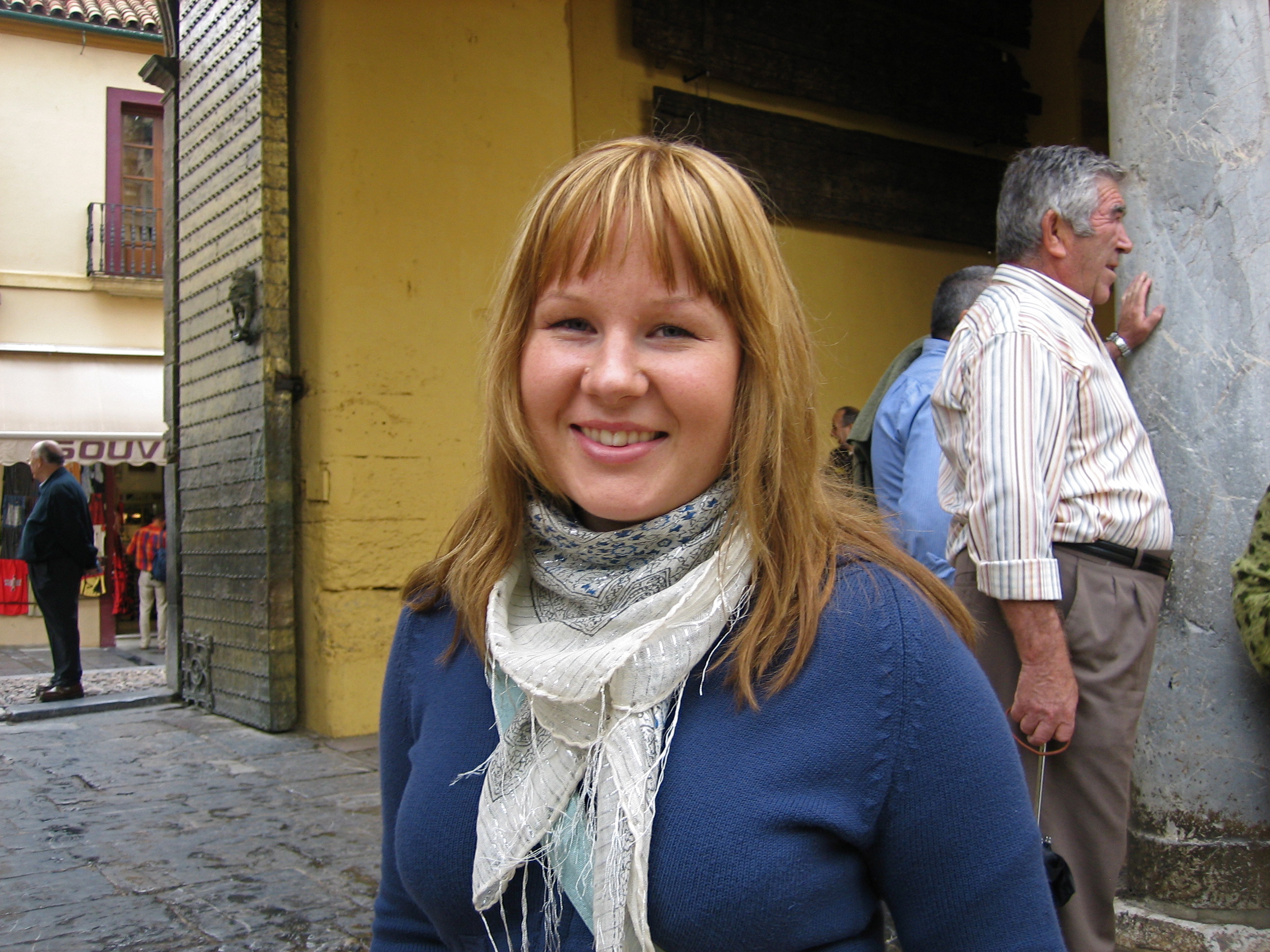 Suuntasimme Córdobaan Málagasta bussilla (bussilla liikkuminen on Espanjassa edullista). Jäimme pois hieman keskustan ulkopuolelle jäävällä bussiasemalla ja koska satoi, hyppäsimme paikallisbussin kyytiin. Missasimme varsinaisen keskustan, mutta huomasimme kyllä, kun tulimme sen ulkopuolelle ja jäimme ensimmäisellä mahdollisella pysäkillä pois. Pahaksi onneksemme sade oli bussimatkan aikana vain yltynyt ja kastuimme ikävästi matkalla keskustaan. Oli tosi kiva viettää päivä märissä vaatteissa ja ei-niin-tyylikkäänä. Onneksi siihen aikaan (olisiko ollut lokakuuta) ei ollut vielä kylmä ilma.