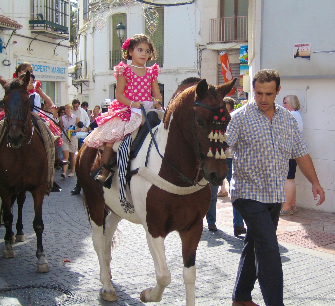 Satuimme vierailemaan Nerjassa feria-aikaan, joten näimme myös juhlakulkueen hevosineen ja koristeellisesti puettuine osallistujineen. Myös paikallinen yleisö oli vetänyt tyypilliseen tapaan flamenco-mekot päälleen (no ei miehet kuitenkaan mekkoja).