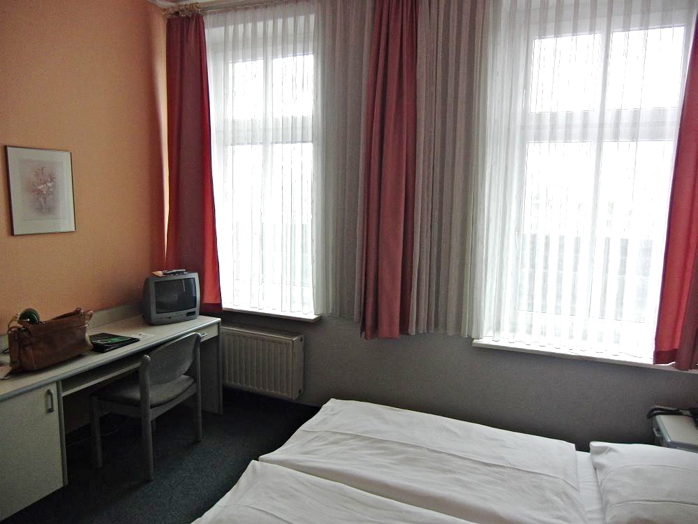 Maksoimme hotellista 39e / yö etukäteen varattuna Booking.com:sta, mistä varasin myös Rooman hotellimme. Hintaan ei kuulunut aamupalaa emmekä halunneet ottaa sitä lisämaksusta (koska Berliinin aamupalat ovat niin ihania kahviloissa ja asemilla). Hotellilla on ilmainen wlan, johon saa tunnukset pyydettäessä respasta.