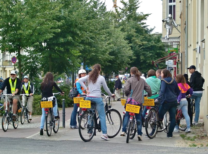 – Berliini on pyöräilykaupunki, sekä paikallisille että turisteille. Kaupungissa tehdään järjestettyjä pyöräilykaupunkikierroksia, jotka ovat varmasti supersuosittuja hyvällä säällä, sillä näimme melko kylmässä ja sateisessakin säässä useita ryhmiä.