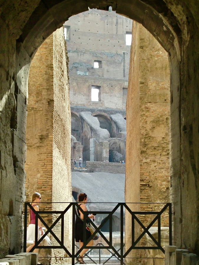 Colosseum on kävelymatkan päässä Terminin asemalta (muutama kilometri), mutta kovasta helteestä johtuen suosimme päivisin metroa. Colosseumilla on oma metroasema, joka on ihan rakennuksen vieressä.