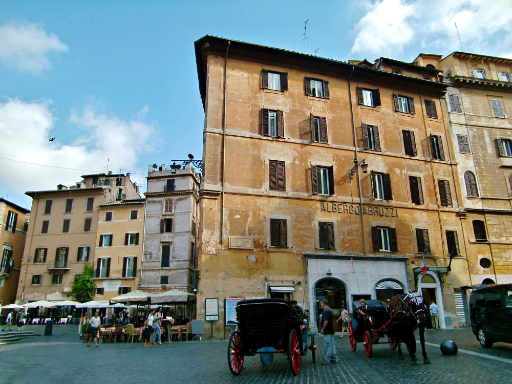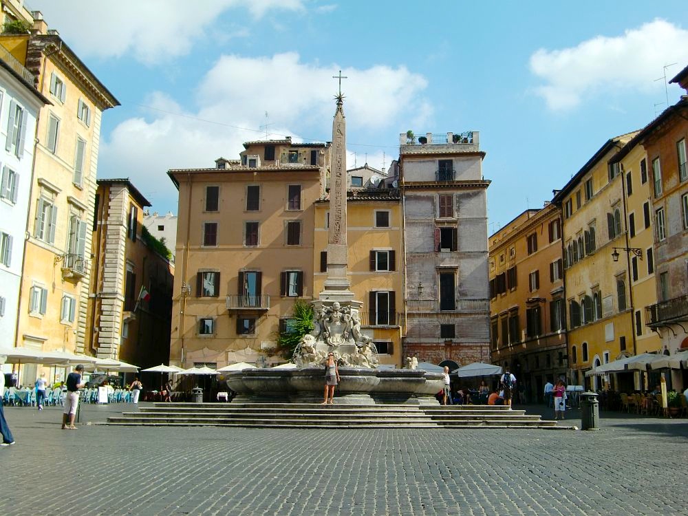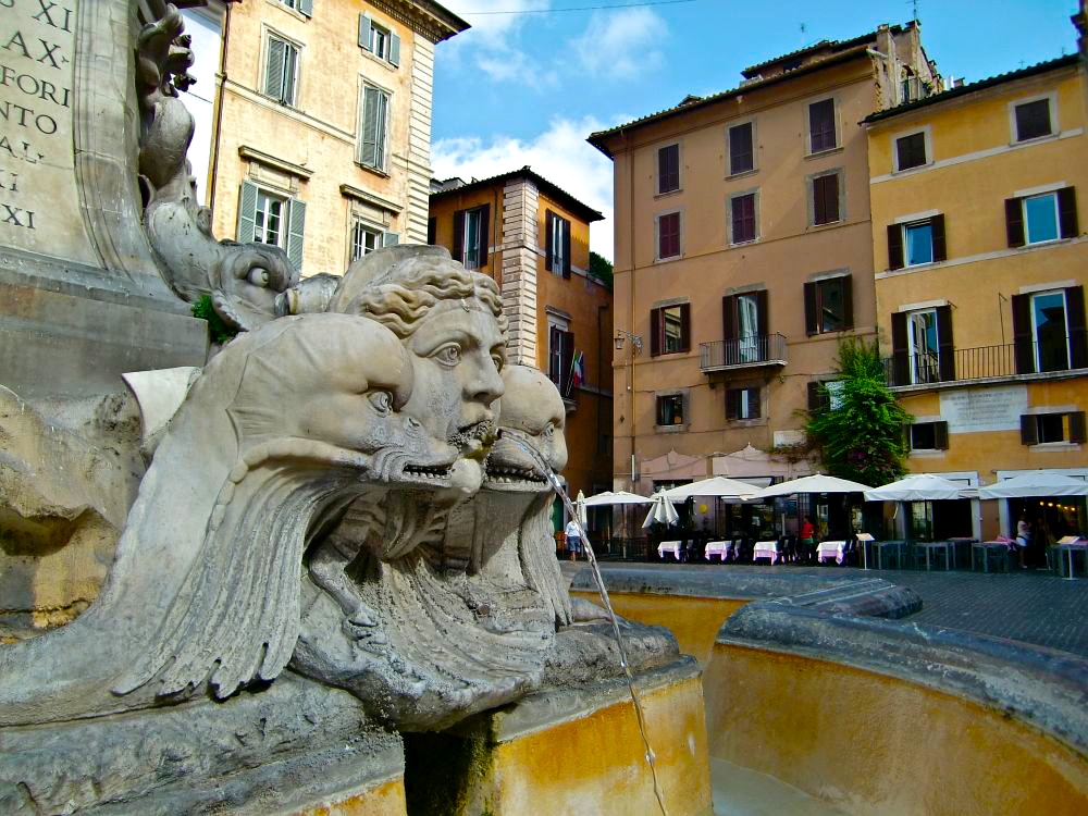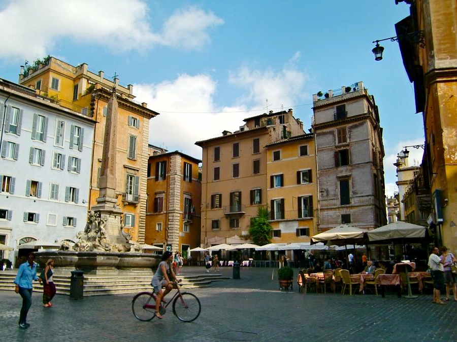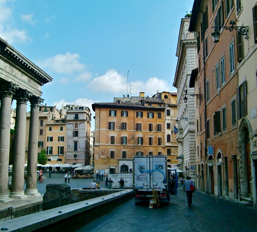 Bussista kannattaa jäädä pois Argentina-aukiolla, missä monet bussit ja yksi ratikkalinja pysähtyy. Aukiolta on enää muutaman korttelin matka Pantheoniin. Ja miksi sinne sitten kannattaa mennä? Itse temppeli on toki näyttävä ja ihanan rauhoittavan viileä sisältä, mutta alueella olevat korttelit ovat postikorttimaisen kauniita. Juuri sitä Roomaa, mitä odottaakin näkevänsä! Alla oleva kuva on ehkä lempinäkymäni Roomassa.