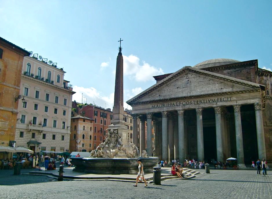 Kaikista Rooman nähtävyyksistä meiltä meinasi jäädä näkemättä Pantheon. Syy taisi olla yksinkertaisesti se, että sinne ei päässyt metrolla ja kartalla kävelymatka näytti pitkälle (mitä se ei todellisuudessa varmasti ollut, kuumuus vaan lannisti meitä kaikenlaiseen itsensä liikutteluun). Sitten viimeisenä päivänä päätimme hypätä bussiin (ei niin yksinkertaista kuin luulisi, mutta siitä tulee sitten oma juttunsa).