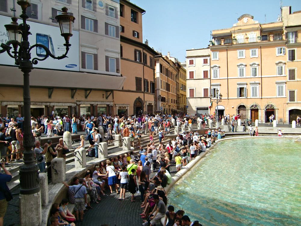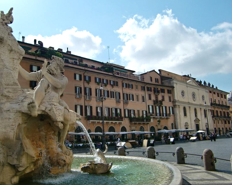 Roomassa ei voi kulkea kadulla törmäämättä piazzoihin ja niiden keskellä pulppuaviin suihkulähteisiin. Välillä tuntuu, että eri piazzojen välillä on vain korttelin verran taloja ja katua erottamassa piazzat toisistaan. Tosin minä kyllä rakastan aukioita, joten en ollut asiasta yhtään harmissani. Minusta on ihanaa, kun ihmiset kokoontuvat istuskelemaan ja viettämään aikaa toistensa kanssa jutellen ja Italiassa kun ollaan, vaikka jäätelöä syöden.