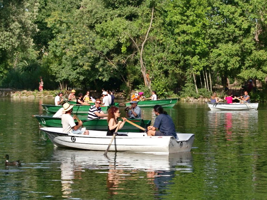 Musiikki oli hyvin improvisoitua lajissaan ja koska en ole kovin suuri jazzin ystävä, en saanut siitä oikein kiinni mistään. Tuskin moni muukaan. Mutta oli kiva seurata sekä yleisöä että hitaasti lammella lipuvaa orkesteria, jolle lammen asukkaat, kilpikonnat, kalat ja linnut olivat antaneet tilaa. Ja kyllä, lammen ympärillä oli varjoisaa ja pieni tuulenvire pääsi kutittamaan otsahiuksia. Puistoreissu oli lomamme rentouttavimpia hetkiä!