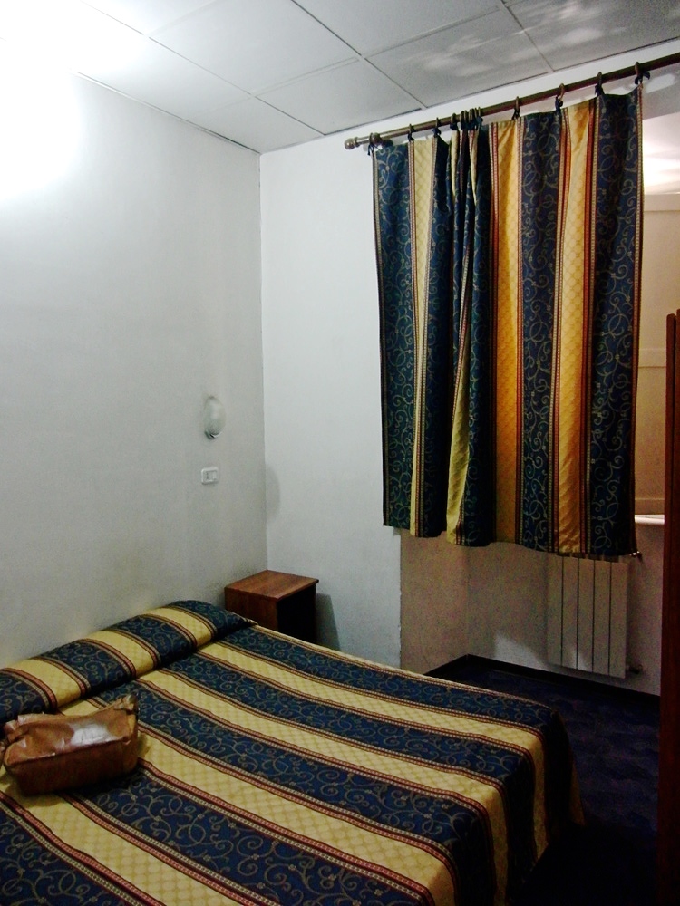 Rooman hotellia etsiessä kriteerejä oli kaksi: sijainti ja hinta. Siis kuten yleensäkin. Eli mukavuuksia ei oltu etsimässä, eikä niitä myöskään saatu. Hyvä sijainti ja suhteellisen edullinen hinta kylläkin. Hotelli varattiin Booking.com:n kautta, kun se sieltä kaikkein edullisimmin saatiin.