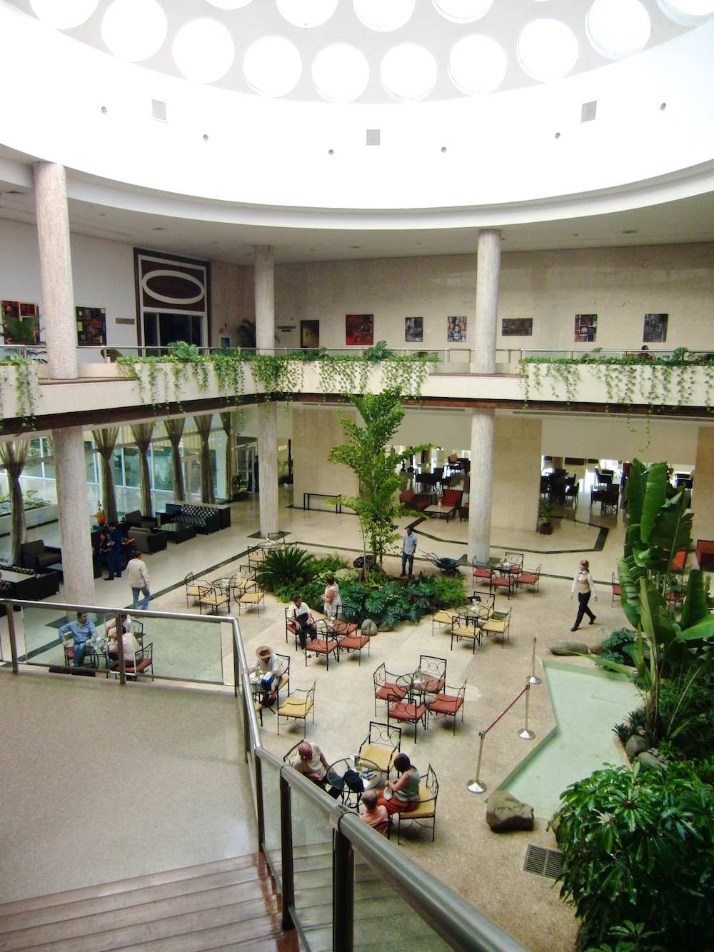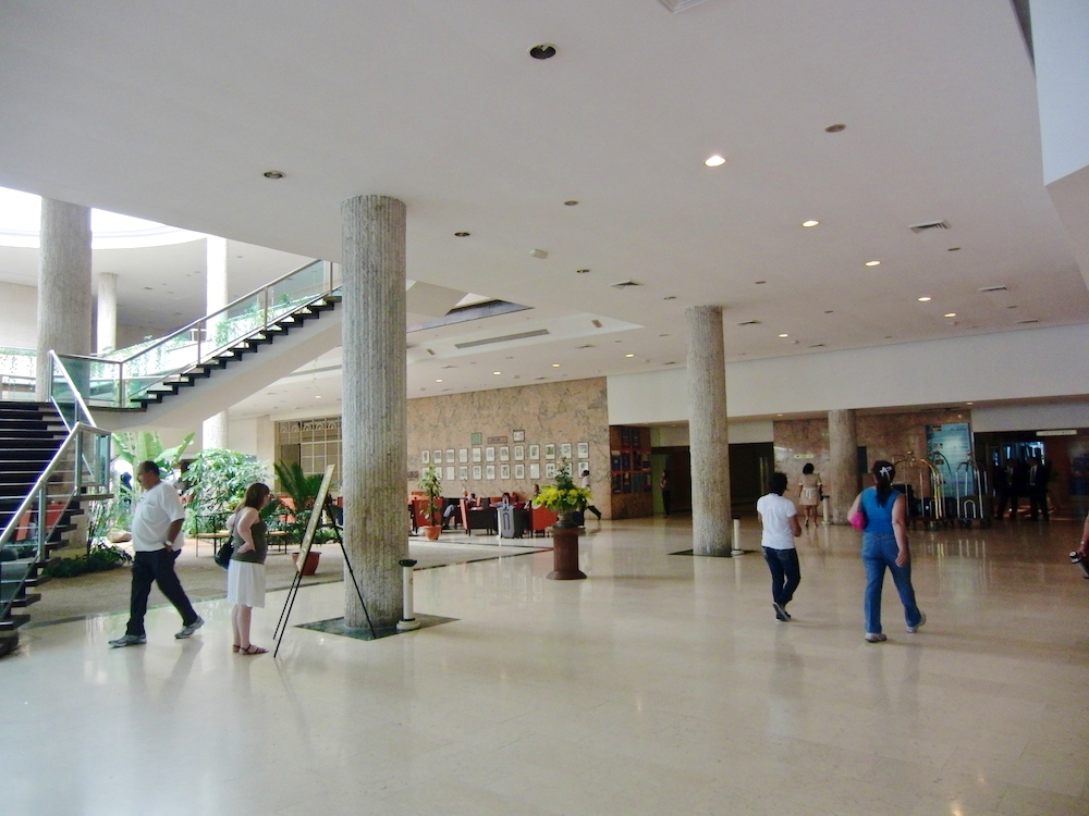 Itse hotelli on näyttävä isoine auloineen ja suurine kukka-asetelmineen (edellyttäen, että kyseisenä päivänä on kukkia saatavilla). Aulabaarissa istuksellaan tilaillen mojitoja ja kuunnellen pianomusiikkia, jota kuullaan myös livenä aamupalalla (pianisti on usein niin lennokkaalla päällä, että varmasti soitto kuuluu perimmäiseen nurkkaankin ja aktivoi volyymillaan ryntäämään äkkiä vielä yhden viinerin perään…).