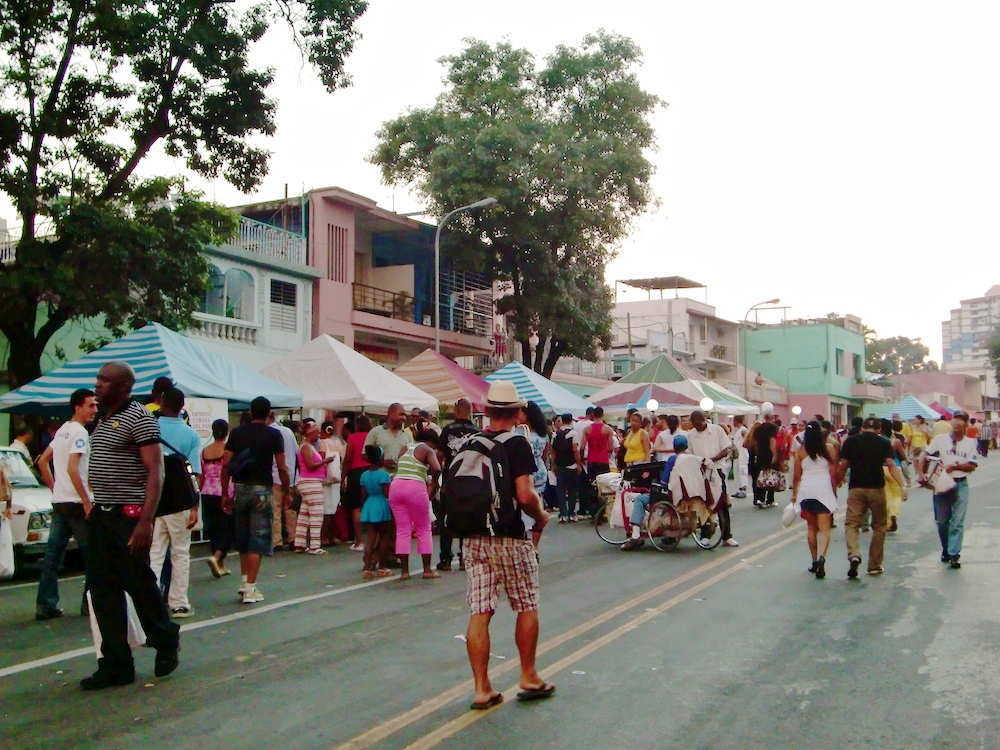 Satuimme itse vierailemaan kaupungissa samaan aikaan, kun keskustan kaduilla ja plazoilla järjestettiin erilaisia musiikkitapahtumia. Tunnelma oli satumainen musiikin ja tanssin sävyttäessä pimeää ja kuumaa Kuuban yötä. Keskustan ulkopuolella, lähellä hotelliamme, oli myös meneillään katujuhlat, mutta niiden pääteemana oli ruoka. Vartaissa pyöri kokonaisia possuja ja rommia oli saatavilla useammastakin kojusta.