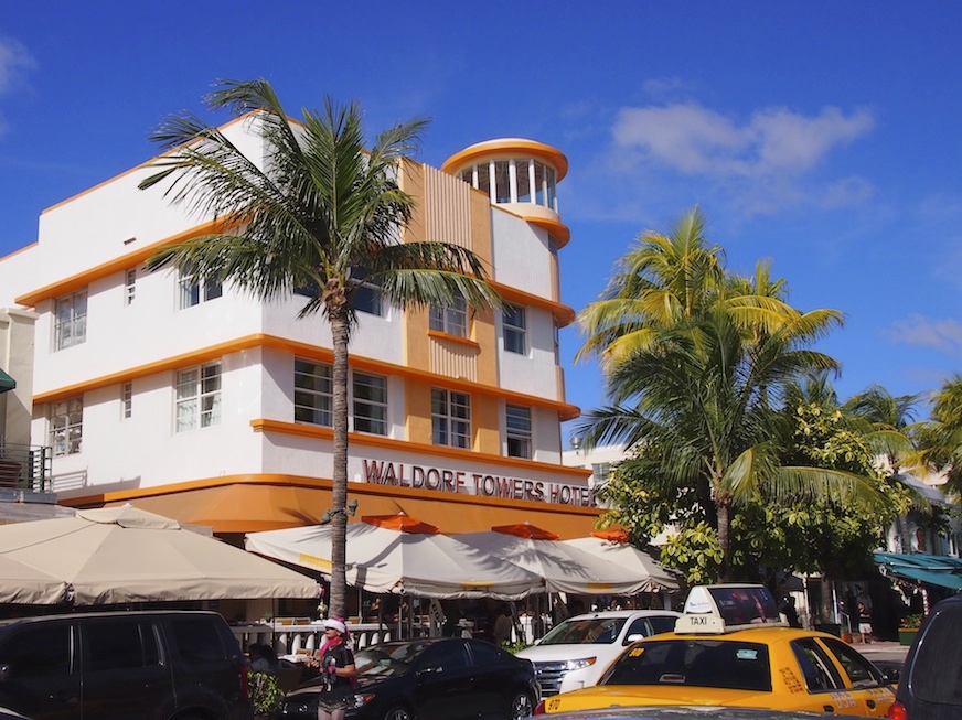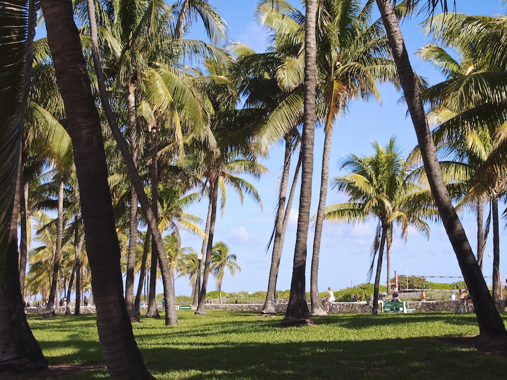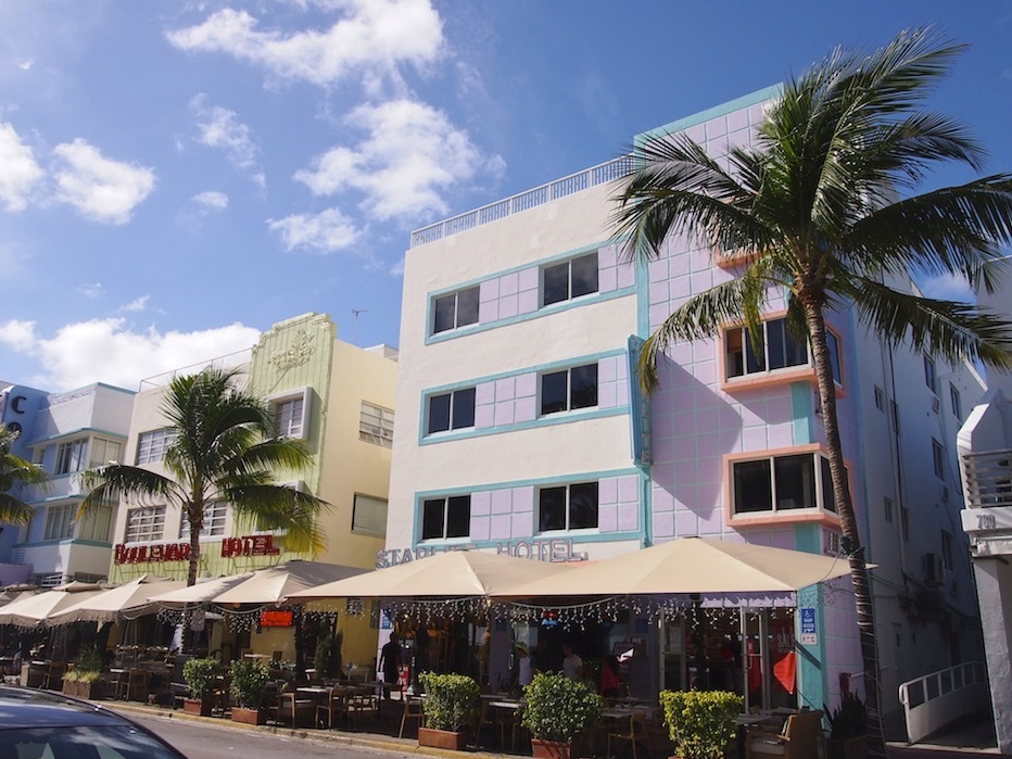 Vaikka olen aina ihaillut arkkitehtuuria, en tiedä siitä hirveästi mitään. Niinpä jätän art deco -analyysini vähemmälle ja päästän kuvat kertomaan Ocean Driven ja tunnelmaa. Kadun mantereen puolella on siis rivi ravintoloita, kahviloita, liikkeitä ja pieniä uniikkeja hotelleja ja toisella puolella Lummus Parkin korkeat palmut. Niiden jälkeen tulee valkoinen hiekka ja lopulta turkoosi meri. Kaunista!