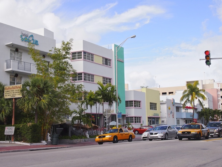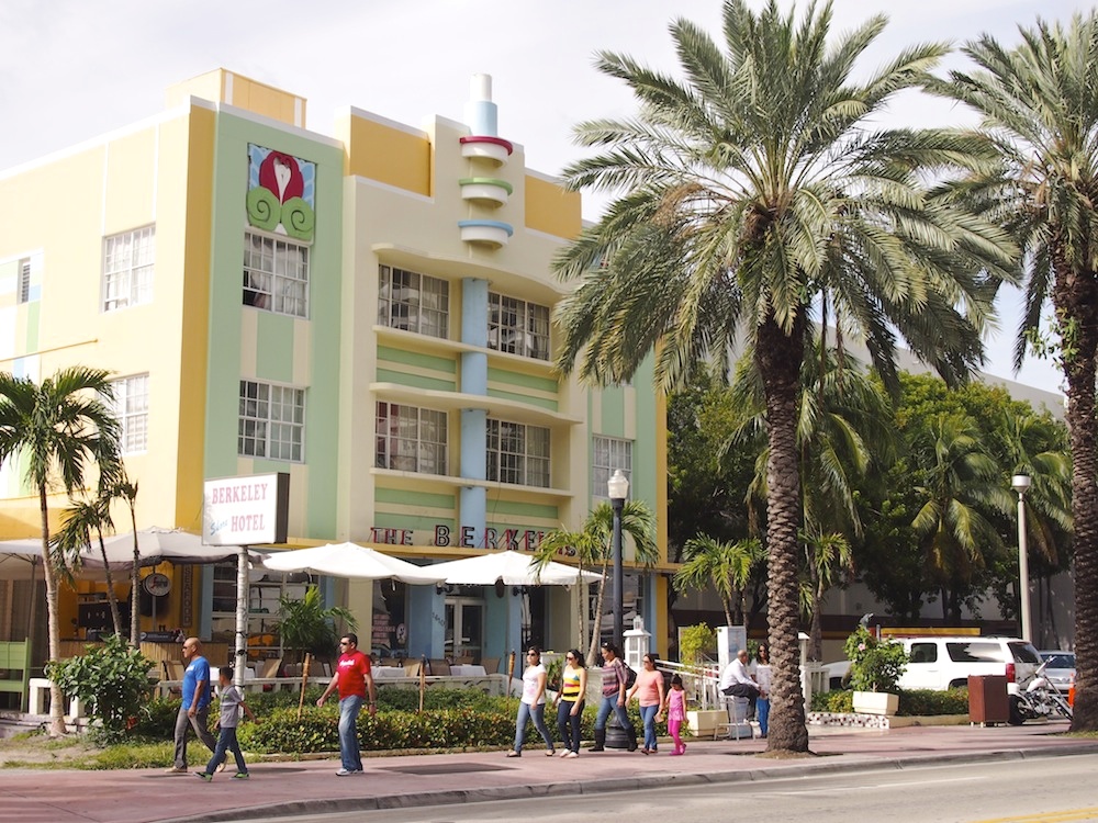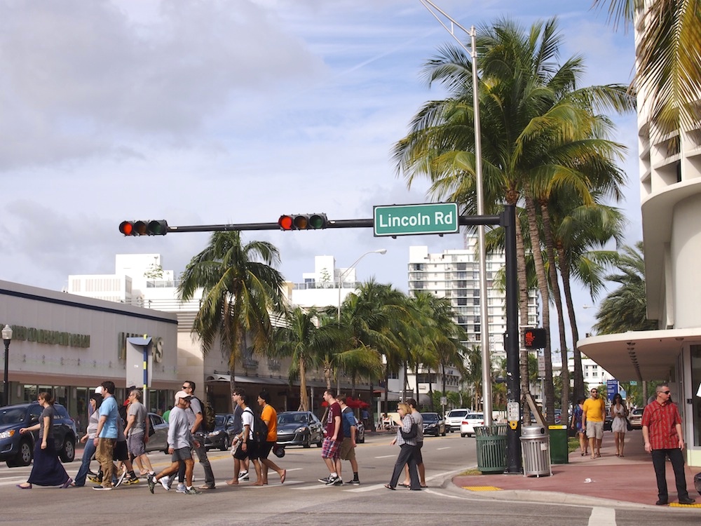 Hotellimme Ocean Spray sijaitsi Miami Beachin keskiosissa. Siitä on noin neljä kilometriä saaren kärkeen ja parisen kilometriä saaren vilkkaimpaan keskustaan eli Lincoln Roadin tienoille. Lincoln Road on osittain suljettu autoilta ja sen varrella on paljon liikkeitä (isoja vaate- ym. ketjuja ja matkamuisto- ym. krääsämyymälöitä), kahviloita ja ravintoloita. Iltaisin katu on täynnä porukkaa.