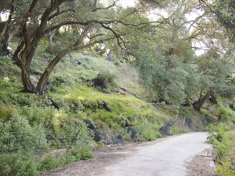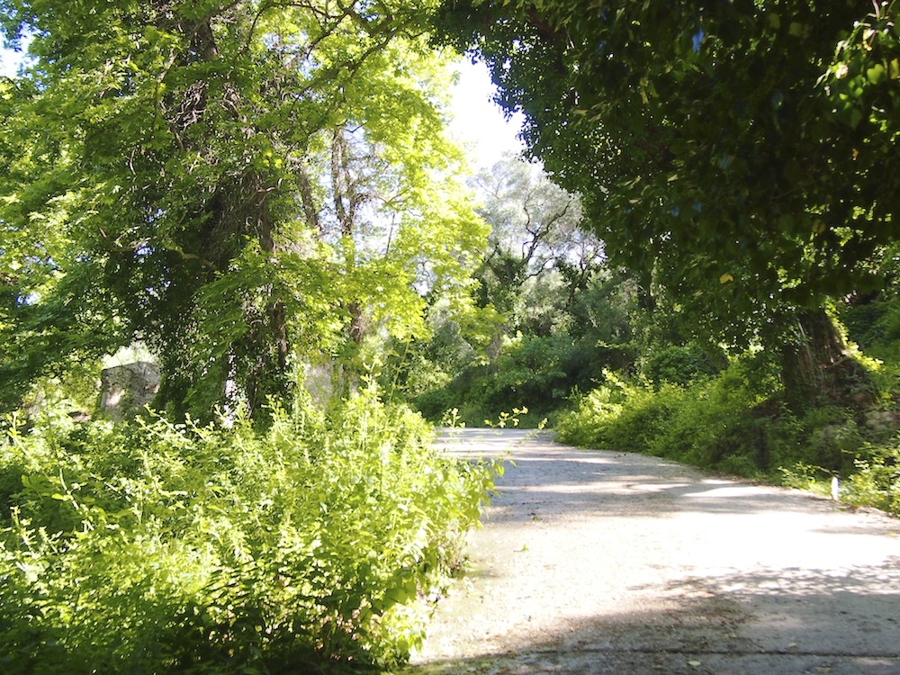 Metsässä on mukavan viileää, kunnes tie alkaa nousemaan jyrkähkösti. Sitten vastaan tulee ikivanha mylly ja pian sen jälkeen betoninen silta, joka menee mitättömän pienen vesiputouksen ylitse (ei mikään nähtävyys siis, vaikka nimestä voisi kuvitella). Sen jälkeen tie saapuu pian Anthousan kylän laitamille, josta kävellään vielä jonkin matkaa kylän keskustaan.