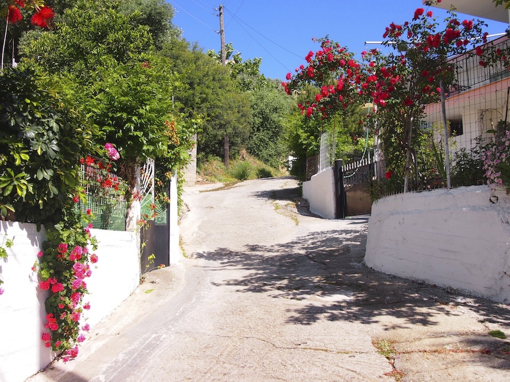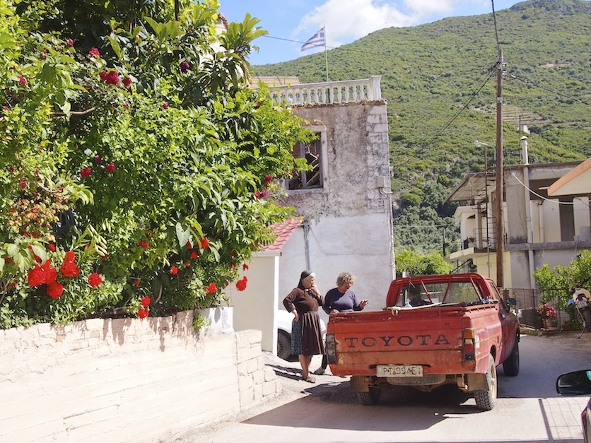 Oma kuntoni loppui Anthousan kylä ylle kiivettyämme. Jäin ihailemaan maisemia ja kylää sekä syömään jäätelöä. Paikalliset mummot, papat ja kissat olivat mitä sympaattisimpia seurattavia ja vaihdoinpa jopa kuulumisia kreikaksi (kala kala vaan jokaiseen asiaan, hyvää hyvää).