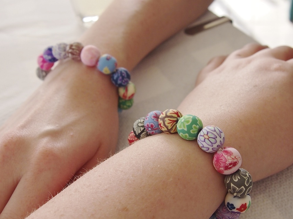 Juuri, kun olimme päättäneet, että nyt pitää säästää loput käteiset ruokailuihin loppuloman ajaksi, tuli vastaan kaksi niin mehukkaan väristä käsikorua, että ei kai tällaiseen tilaisuuteen voi olla tarttumatta. Hintaa oli ehkä 3e/kpl, joten eipä jouduttu edes pihistelemään niiden takia. Seuraavalla kerralla, kun kävelimme kyseisen liikkeen ohi, huomasimme samaa sarjaa olevat korvakorut, ja taas oli pakko mennä kassan kautta!