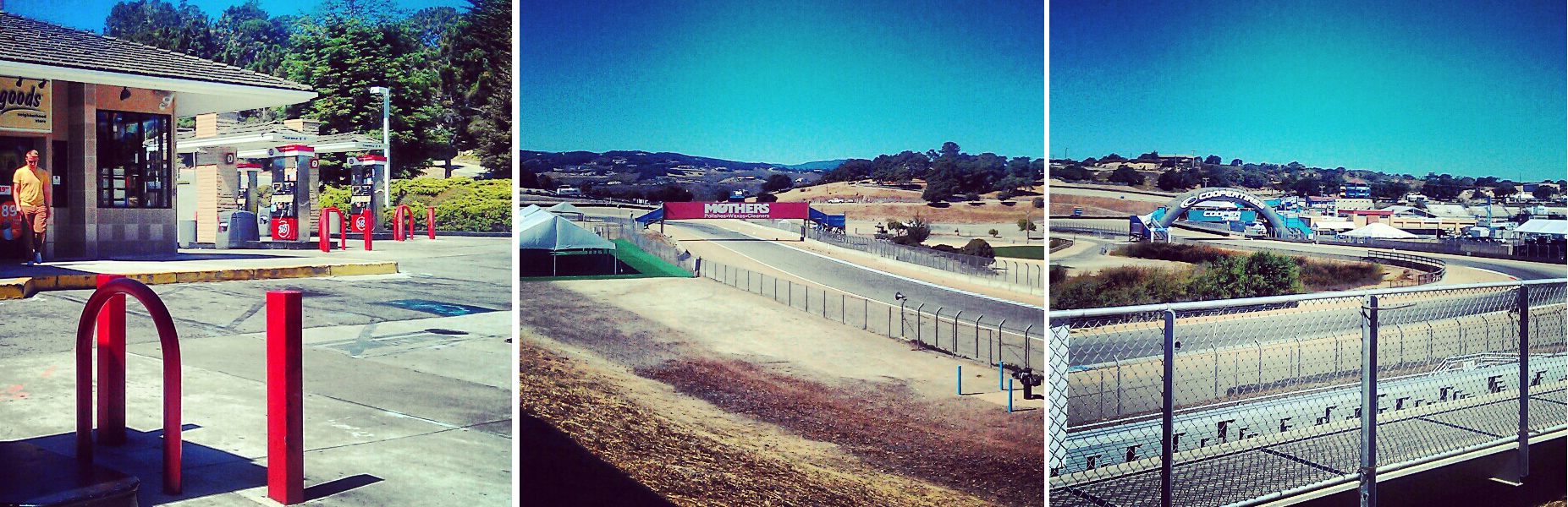 Lauantaina starttasi varsinaisen road tripimme ensimmäinen ajo-osuus. Lähdimme San Franciscon motellistamme aamulla ja ensimmäisenä etappina oli Salinas ja Laguna Secan moottorirata. Ajoimme läpi Piilaakson ja saavuimme muutaman tunnin ajomatkan jälkeen radalle, joka oli reittimme varrella eikä vaatinut lisämutkia. Pääsimme rata-alueelle nopealle valokuvauskierrokselle ilmaiseksi ja kävimme ajamassa radan viereisiä teitä. Radalla oli ihan kiitettävästi autoja ja meininki oli hieman fast and the furious -tyylistä. Autot ainakin.