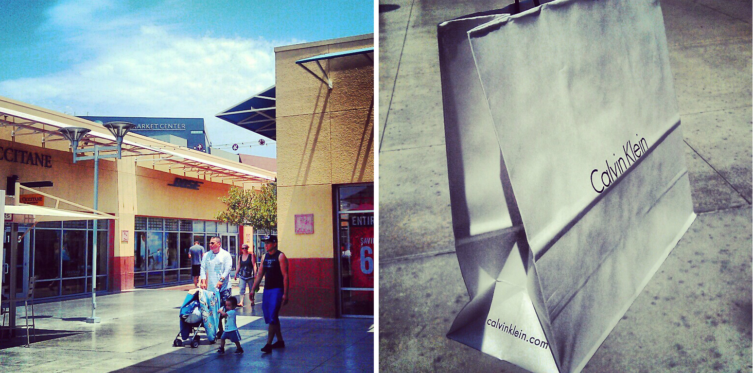 Pienen ajelun jälkeen menimme ostoksille, sillä olimme huomanneet auton ikkunasta Premium Outlet -ostoskeskuksen. Ostoskeskuksella oli oma ilmainen parkkihalli ja aamusta siellä oli vielä tilaakin. Shoppailimme muutamat alevaatteet (kaupoissa on paljon 50% aleja kaikista tuotteista), tappelimme limppariautomaatin kanssa ja suuntasimme takaisin hotellille. Tällä kertaa saimme autopaikan alempaa ja se on nyt varjossa. Tosin lähdemme kohta uudelleen liikkeelle ja menetämme kyseisen paikan.