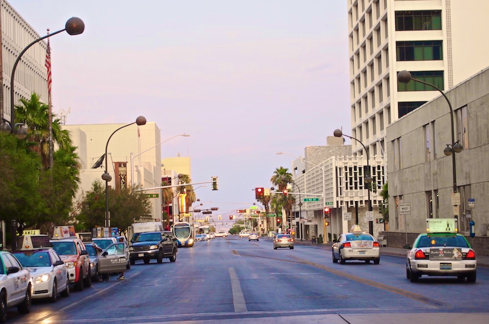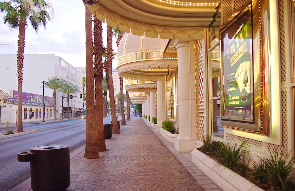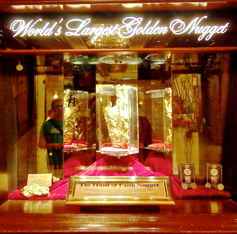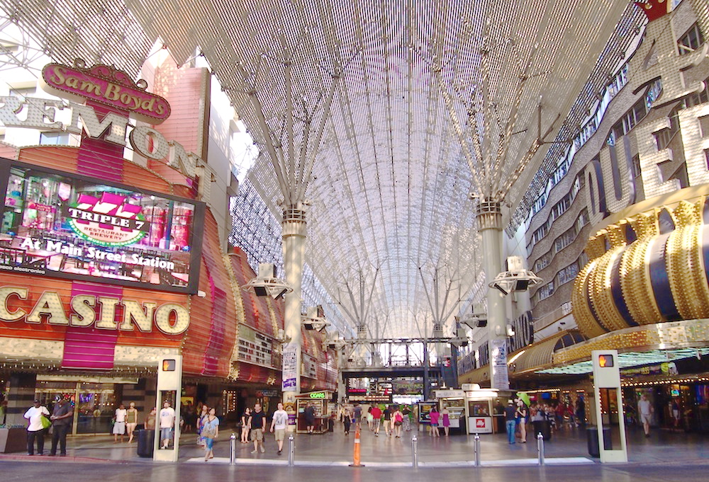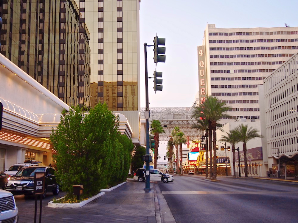 Mitä vielä? Golden Nugget sijaitsee siis Las Vegasin keskustassa, downtownissa. Mutta The Strip, katu jonka varrella valomeren seassa pilkottaa suuria ja kuuluisia casinoita, sijaitsee useamman kilometrin etelämmässä. Onneksi sinne pääsee kuitenkin bussilla, jonka pysäkki on kävelykadun keskellä. Ja pelaamaan pääsee halutessaan downtownin vanhoilla casinoilla.
