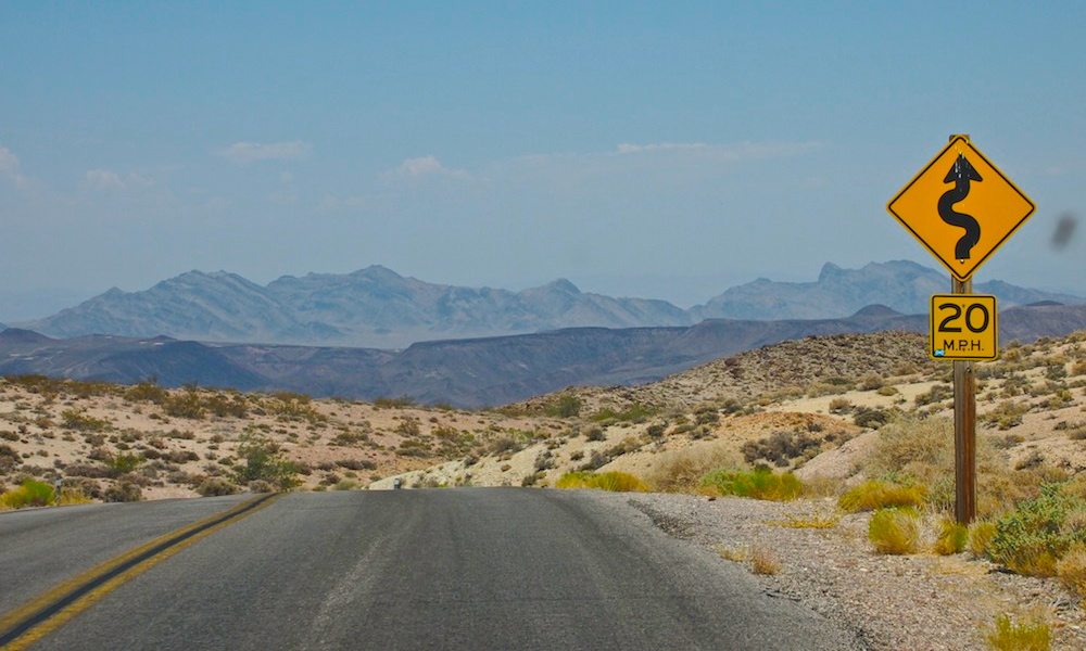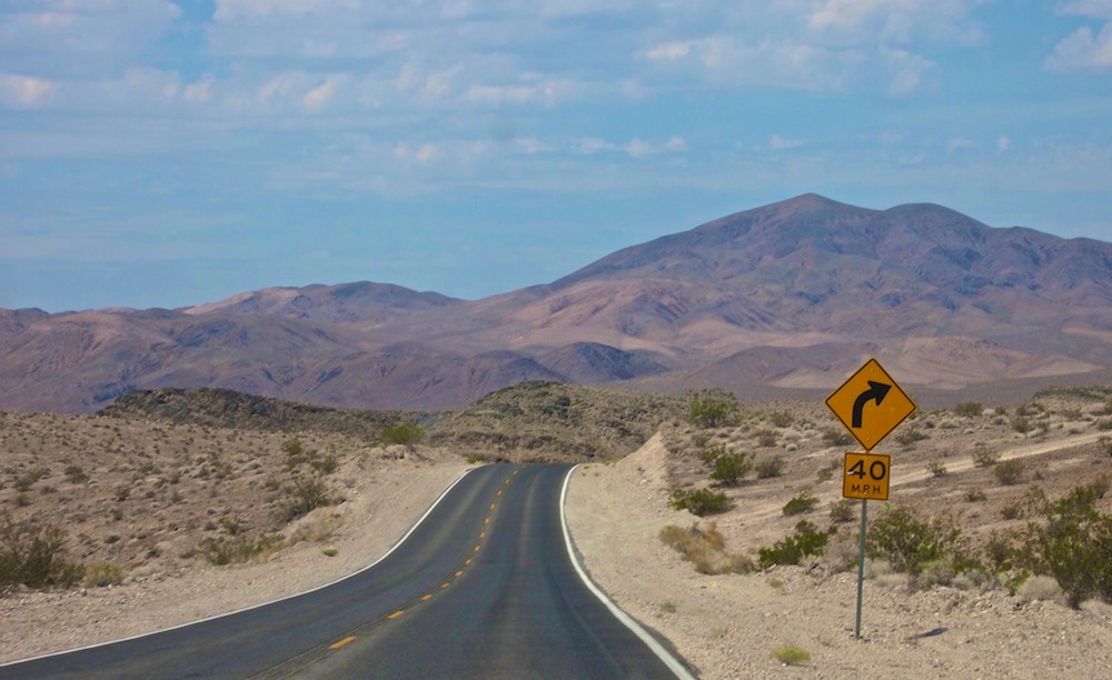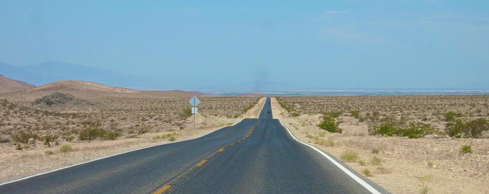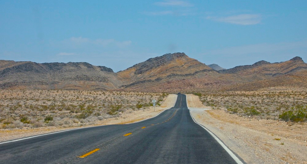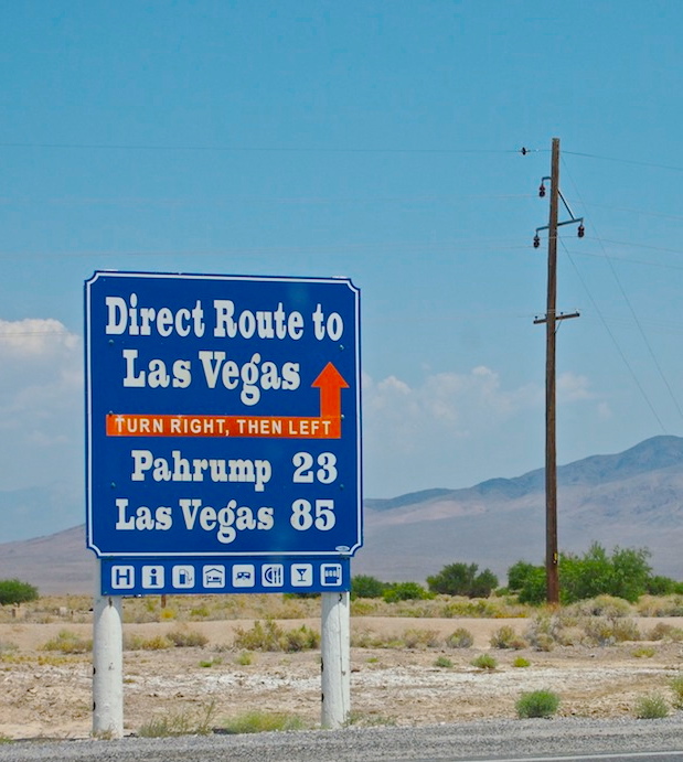 Ajoimme kaupungista ulos ja katselimme mielenkiinnolla harvenevaa laitakaupunkia. Lopulta harvatkin talot loppuvat ja autiomaataival alkaa. Tien varrella on varoituskylttejä ties mistä eläimistä ja jossain vaiheessa ohitamme muutaman rakennuksen käsittävän autioituneen alueen. Ajamme läpi Pahrumpin kaupungin, jonka lukuisat ilotulitekaupat mainostavat itsenäisyyspäivän rakettja kilpaa toisiaan vastaan.