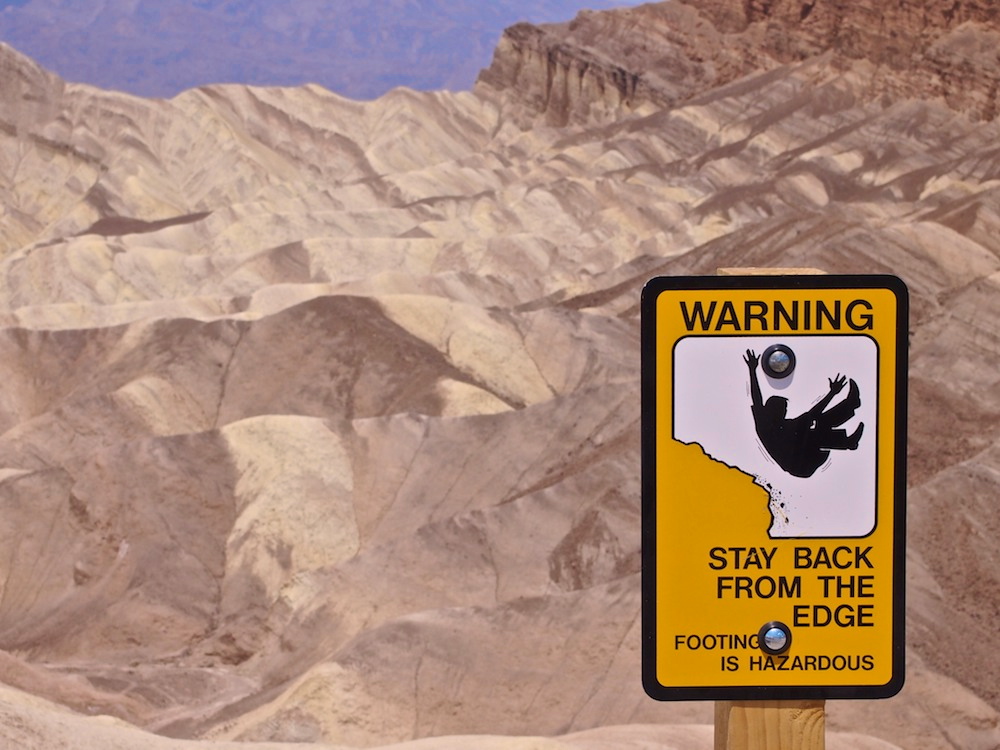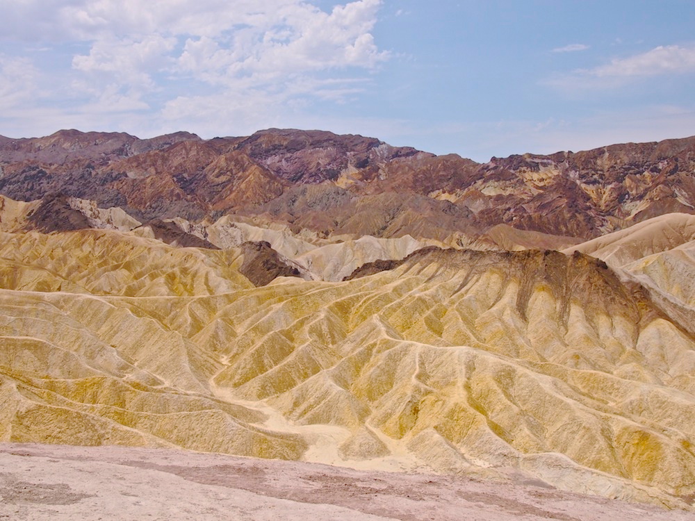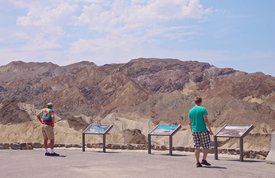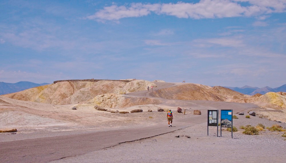 Zabriskie Point ei näytä kovin haastavalle näköalapaikalle, sillä se ei ole kovin korkea ja tie sen laelle on lyhyt. Mutta helpommin sanottu kuin tehty. Kuumuus on lannistaa jo heti puolen välin jälkeen, mutta kaikki normaalikuntoiset pääsevät kyllä kävelemään pysähtelemättä pienen nyppylän laelle.