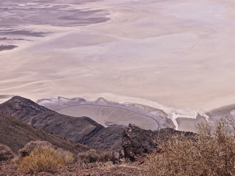 Ajamme Furnace Creekiin, joka osoittautuu lähinnä ranch-tyyliseksi lomakyläksi. Käymme autioituneen näköisellä pienellä alkeellisella lentokentällä ja lähdemme samoja jälkiä takaisin, tällä kertaa lopullisena määränpäänä Dantes View.