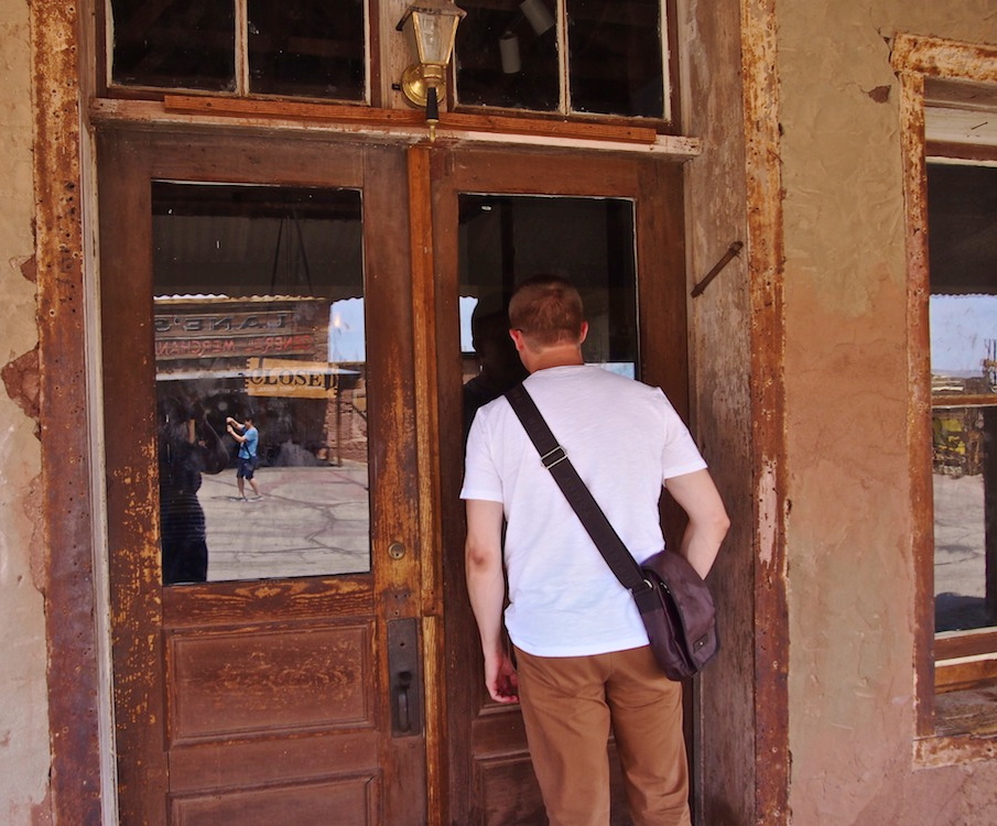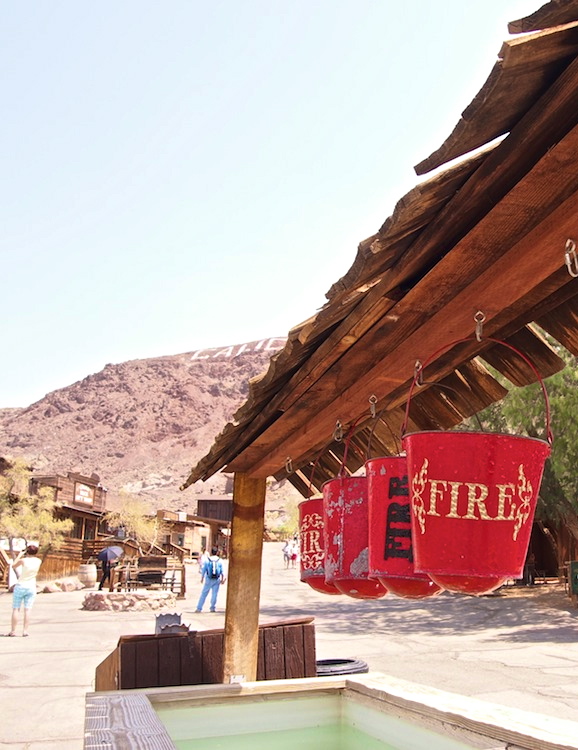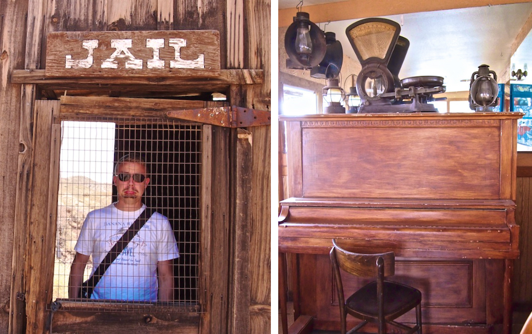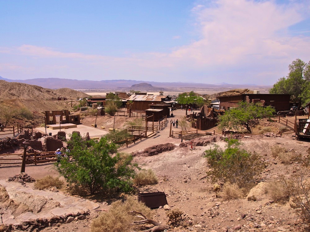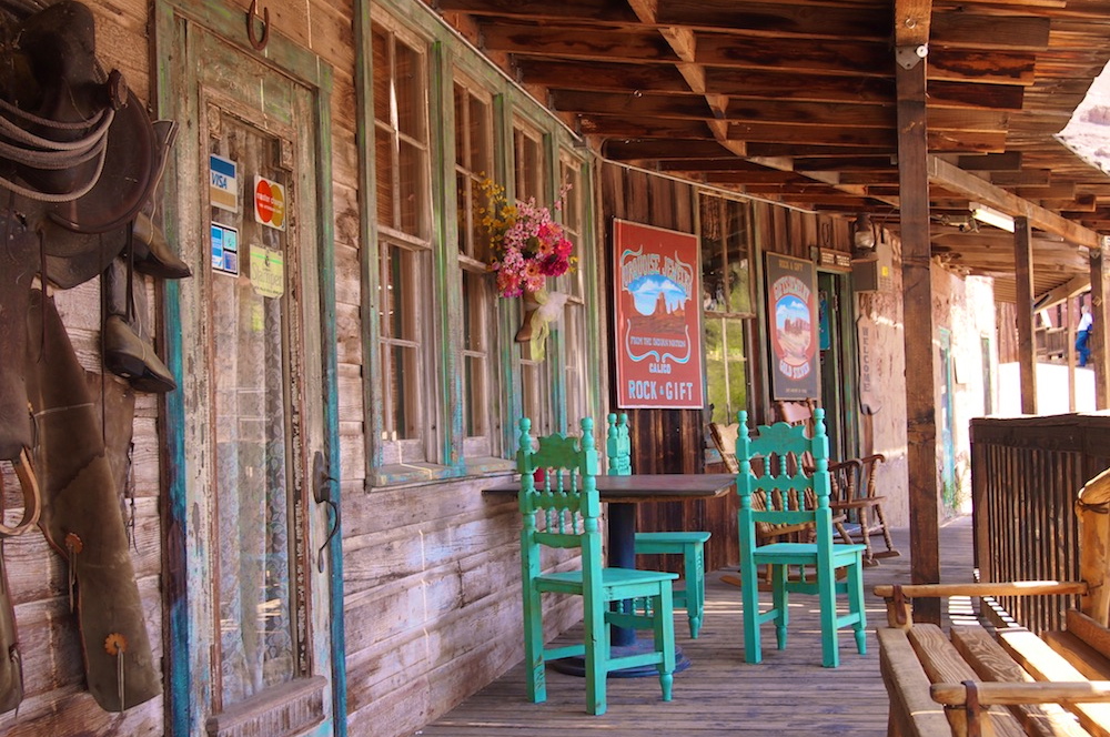 Edelliseen Death Valleyn päivään verrattuna sää oli varsin siedettävä 40 astetta ja paahtavan aurinkoista. Ihan oikeastikin ilma tuntui jo paljon inhimillisemmältä kuin edellisenä päivänä ja autosta ulos hypättäessä ei tuntunut kovin ahdistavalle. Sen verran suomalaiselle kuuma ilma se oli kuitenkin, ettei kylänraitilla jaksanut kävellä loputtomiin, vaan päätimme nopean kierroksen jälkeen mennä juomaan kylmää juomista ja istumaan kahvilan terassin varjoon.