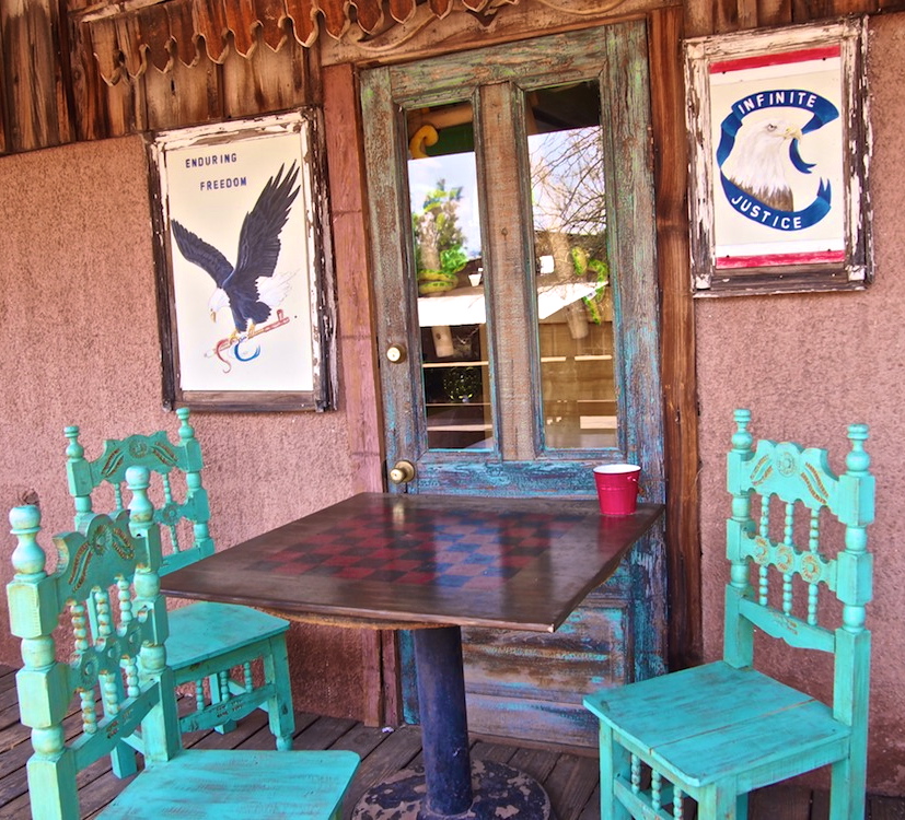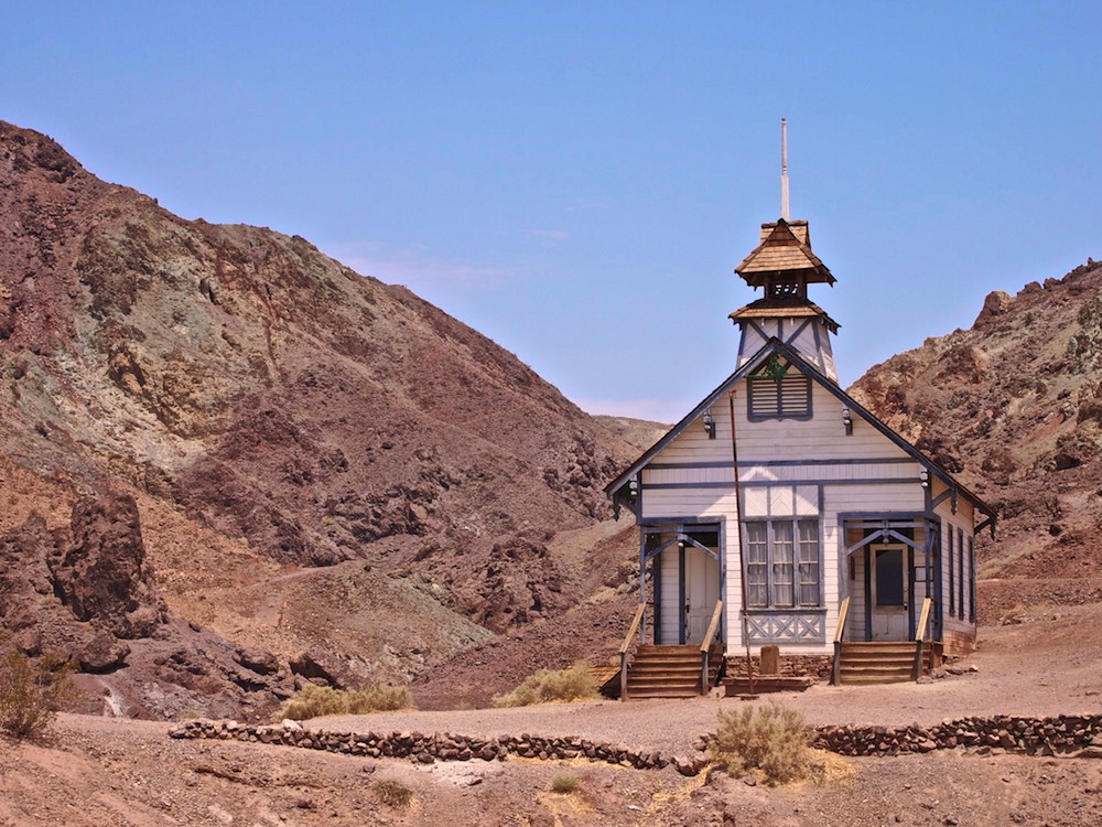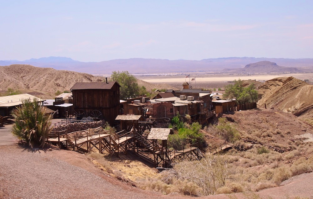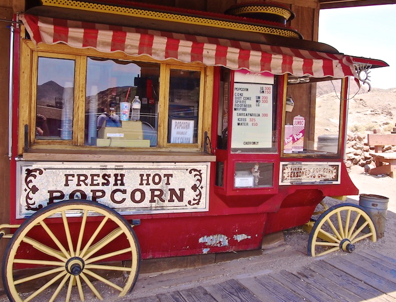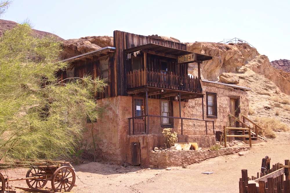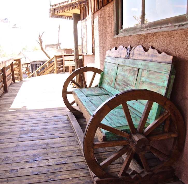 Edelliseen Death Valleyn päivään verrattuna sää oli varsin siedettävä 40 astetta ja paahtavan aurinkoista. Ihan oikeastikin ilma tuntui jo paljon inhimillisemmältä kuin edellisenä päivänä ja autosta ulos hypättäessä ei tuntunut kovin ahdistavalle. Sen verran suomalaiselle kuuma ilma se oli kuitenkin, ettei kylänraitilla jaksanut kävellä loputtomiin, vaan päätimme nopean kierroksen jälkeen mennä juomaan kylmää juomista ja istumaan kahvilan terassin varjoon.
