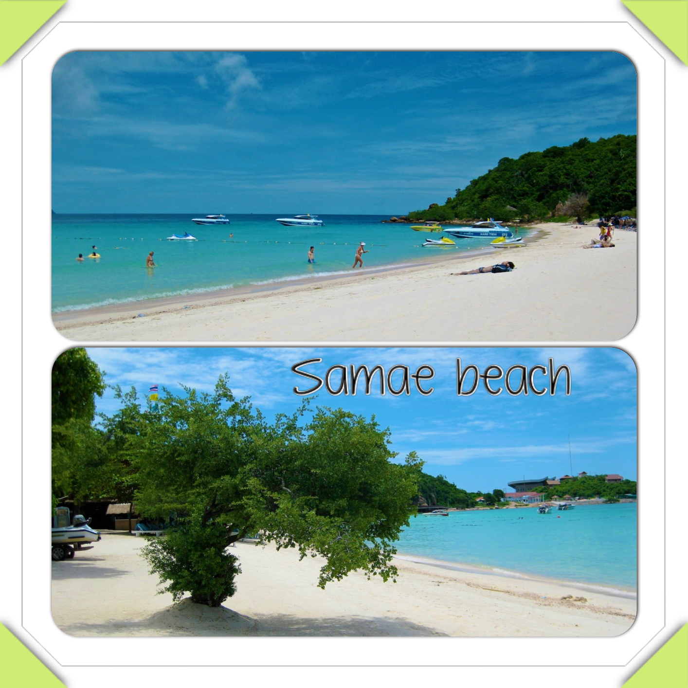 Tänään on vuorossa Thaimaa ja Siaminlahdella sijaitseva Koh Larn. Pieni paratiisini muutamien vuosien takaa, kun olin työharjoittelussa Pattayalla. Nämä kuvat valikoituivat katseeni alle sattumalta ja päätin heti tarttua niihin. Sillä fiilis sopii todella hyvin tähän kiireisen lokakuun ankean torstaihin: työviikot Thaimaassa olivat pitkiä, pidempiä kuin Suomessa, joten arkea tuntui jatkuvan loputtomasti. Mutta sitten sai vetää bikinit päälle, läpsytellä Ipanema-sandaaleissa satamaan, hypätä seuraavaan laivaan ja matkustaa lähimmälle saarelle, Koh Larnille.