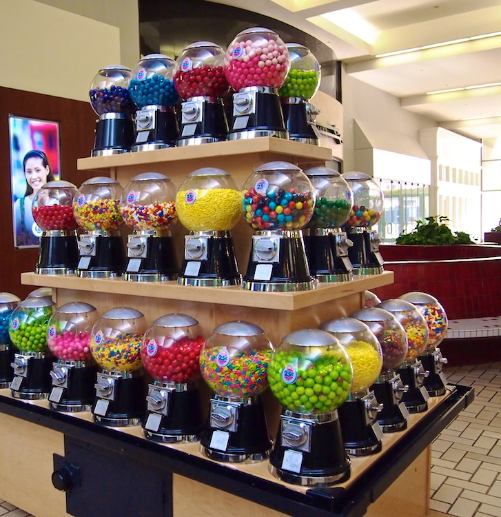 Nappasimme muutaman valokuvan ja lähdimme etsimään kohtauspaikkaa, jossa oli rullaportaat. Löysimme myös sen myöhemmin ja olimme tyytyväisiä. Eikä pelkästään siihen, että näimme muutaman kohtauspaikan yhdestä molempien lempielokuvasta vaan siihen, että Del Amo Mall oli hauska ja hyvin paikallinen ostoskeskus. Ostokset rajoittuivat kuitenkin tällä kertaa muutamiin purkkapalloihin, joista intouduimme lasten lailla. Mutta kun ne oli niin houkuttelevan näköisiä ja niissä oli vaikka mitä makuja: hot cinnamon, caramel apple…