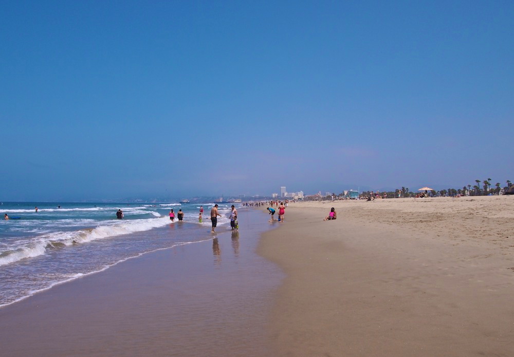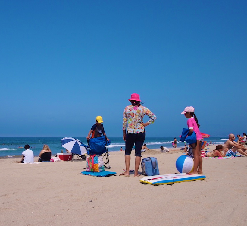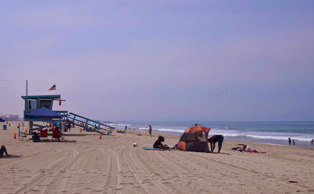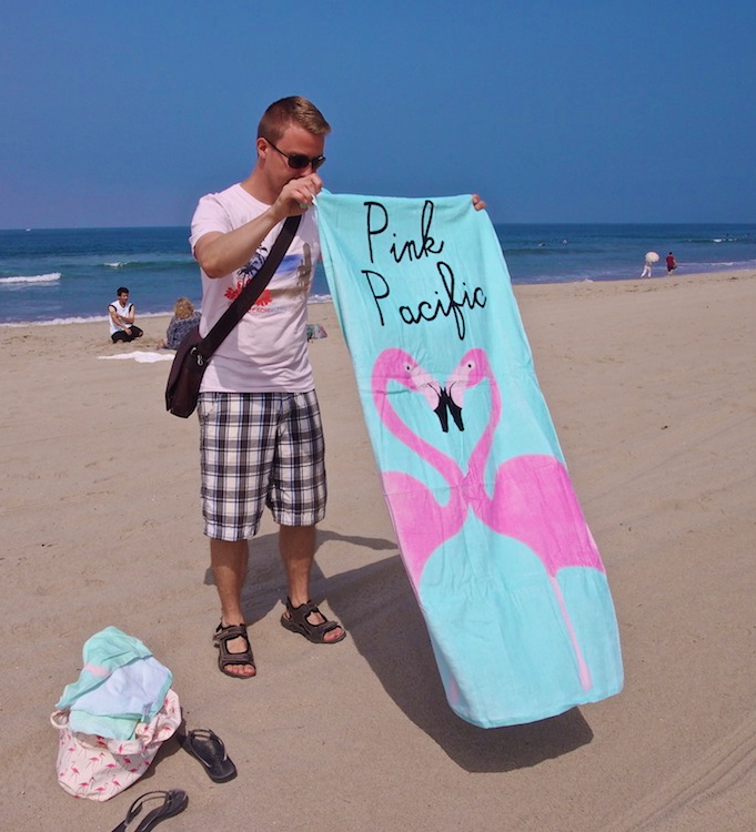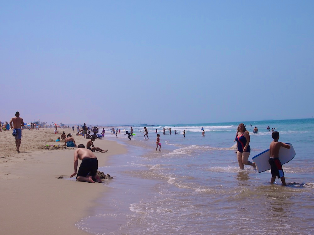 Koska kuvia on iso kasa, niin tässä rantakuvien ensimmäinen osa: rantaelämää Venice Beachin ja Santa Monica Beachin välimaastosta. Hienohiekkainen ranta on leveä ja sinne voi levittää pyyhkeensä minne tahansa. Monet toivat mukanaan katoksia ja rivistön kylmälaukkuja ja viettivät aikaa kaveriporukalla tai koko perheen kesken. Meillä oli mukana vaatimattomasti vain pyyhkeet ja vesipullot, mutta tarkoituksena olikin lopuksi mennä kävelemään Venicen rantakadulle ja haukata jotain pientä.