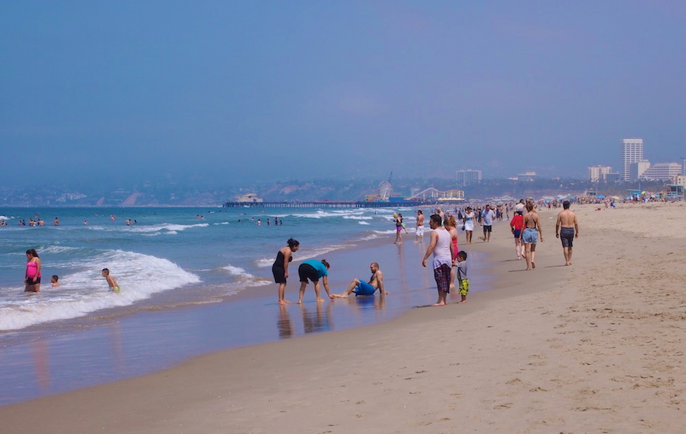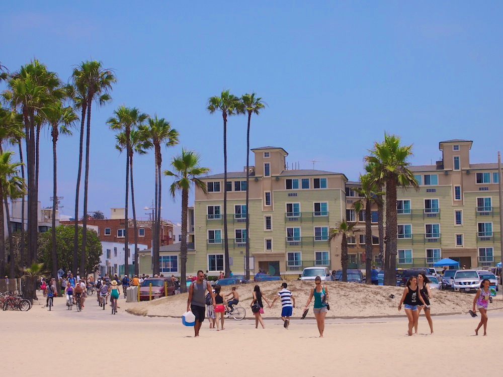Majoituimme ensimmäiseksi Los Angelesissa Culver Cityyn, sillä se oli sopivasti Santa Monican vierssä, mutta majoitushinnat olivat selvästi alhaisemmat. Rannalle oli siis enemmän kuin kävelymatka, mutta eipä se haitannut autoilukaupunki Losissa. Jätimme auton yhdelle maksullisista parkkialueista, joilla parkkiaika ostettiin aina koko päiväksi ja autolle varattiin tietty paikka. Autolla pystyi siis käymään välillä muuallakin, joten mekin vietimme ensin puoli päivää Venice Beachilla ja illalla tulimme uudelleen ja kävelimme Santa Monican laiturille katselemaan 4th of July:n juhlallisuuksia.