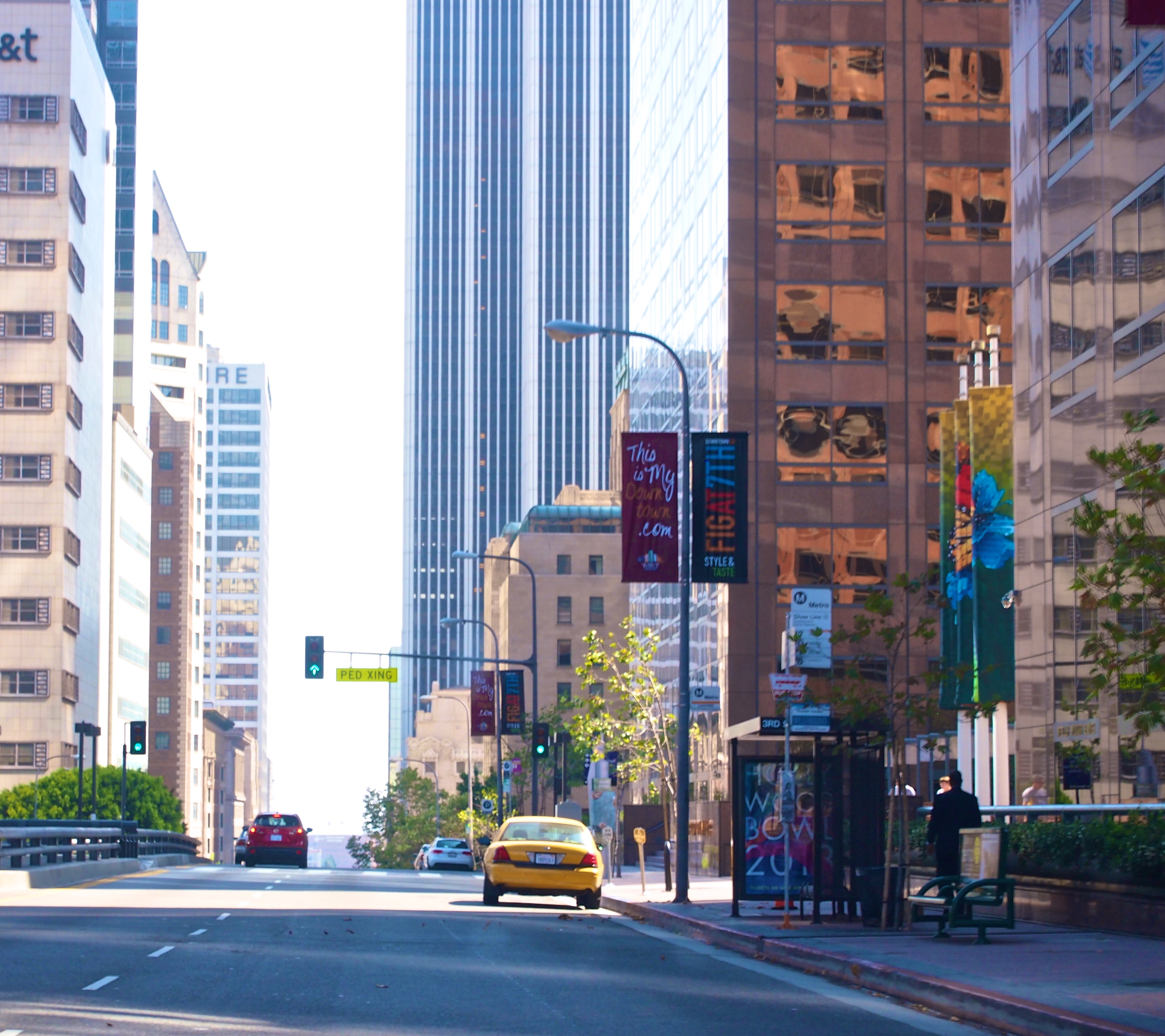 Ja sitten Los Angeles downtown. Pilvenpiittäjäkeskustassa ei ole nopealla vilkaisulla mitään katsottavaa. Toimistoja, toimistoja, yksittäinen kahvila. Sunnuntaina kadut ovat melko tyhjät. Oikeastaan tunnelma on aika ainutlaatuinen. Miten ison kaupungin keskustassa onkaan näin hiljaista?