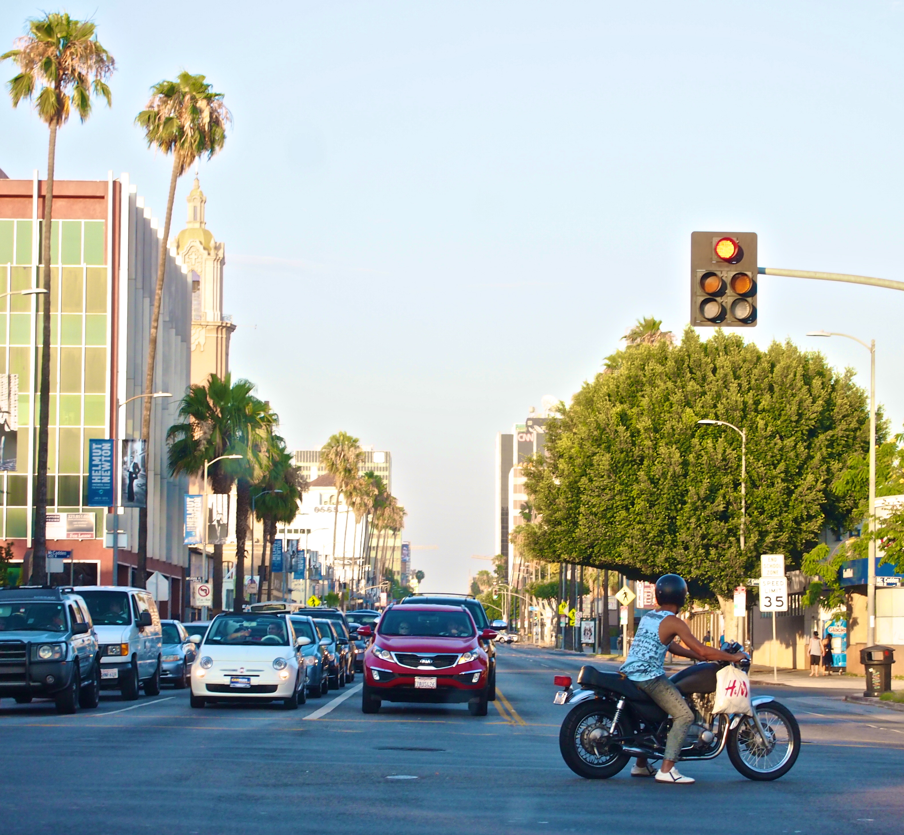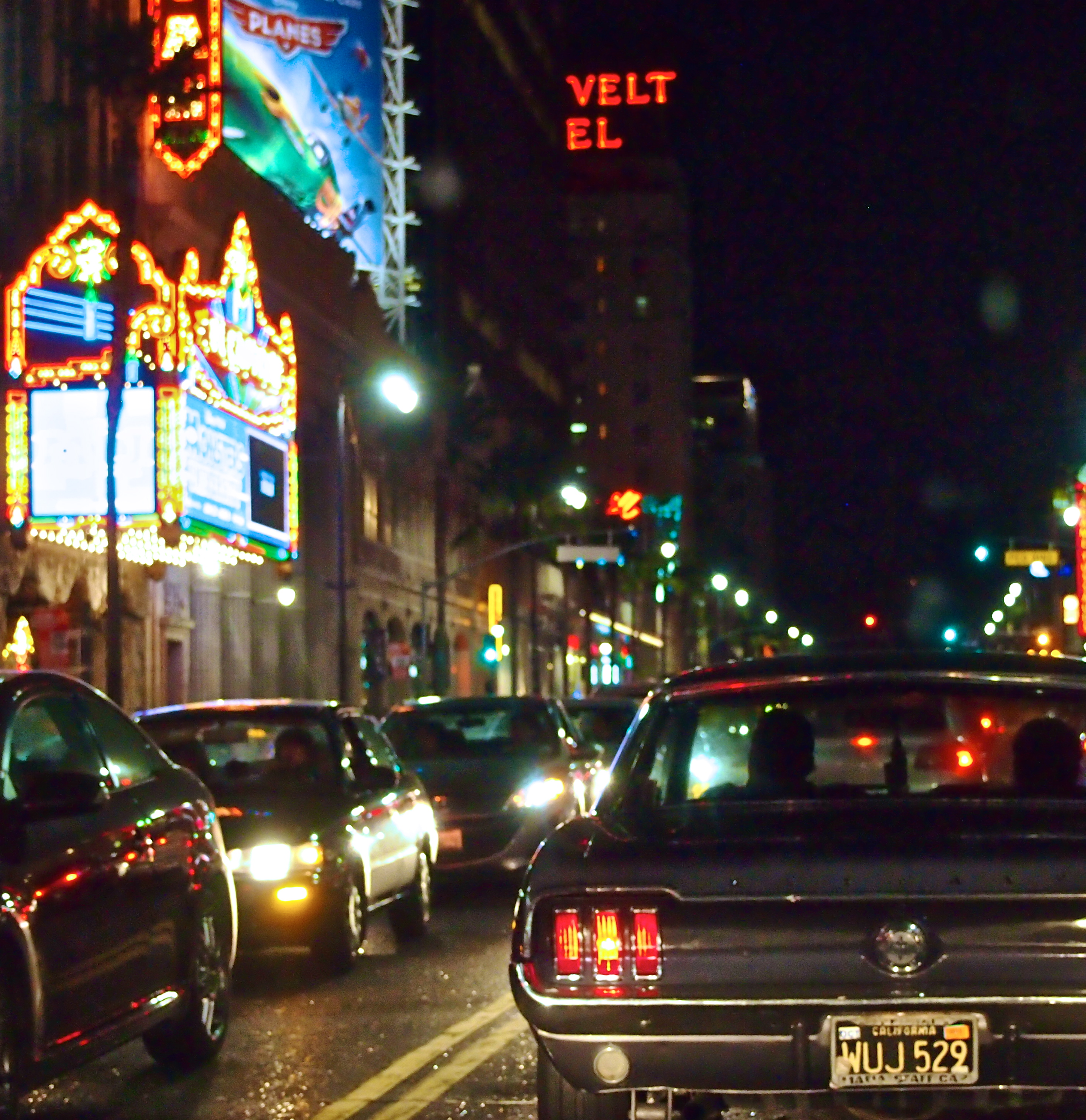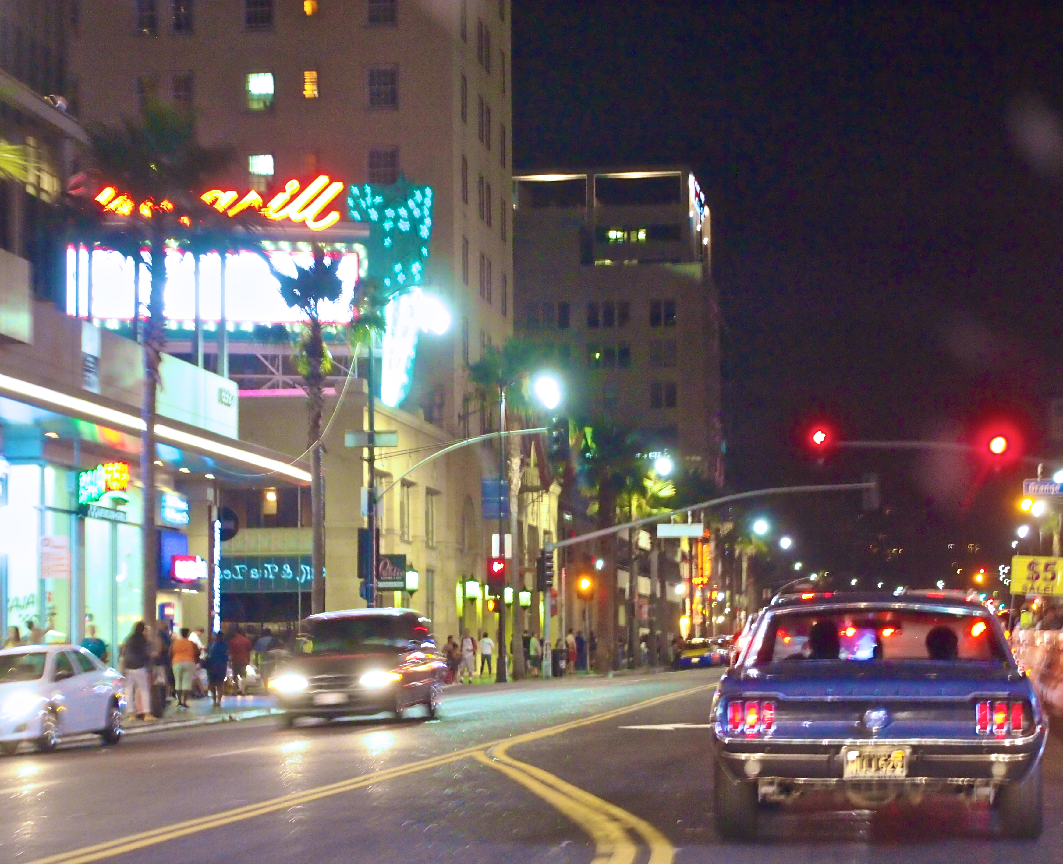 Sen lisäksi, että autoilimme Los Angelesin ulkopuolella Orange Countyssä San Diegoon asti ja takaisin, teimme myös kierroksia kaupungin sisällä: Hollywoodin kukkulat näköalapaikkoineen ja Mulholland Drivea pitkin ajaen. Sunset Boulevardia pitkin kruisailu suuntaan jos toiseenkin. Pieni raapaisu Beverly Hillsiä Rodeo Drivea pitkin. Öisiä valoja tuikkiva ja ihmisiä vilisevä Hollywood Boulevard, läpi Walk of Famen tähtireunuksen.