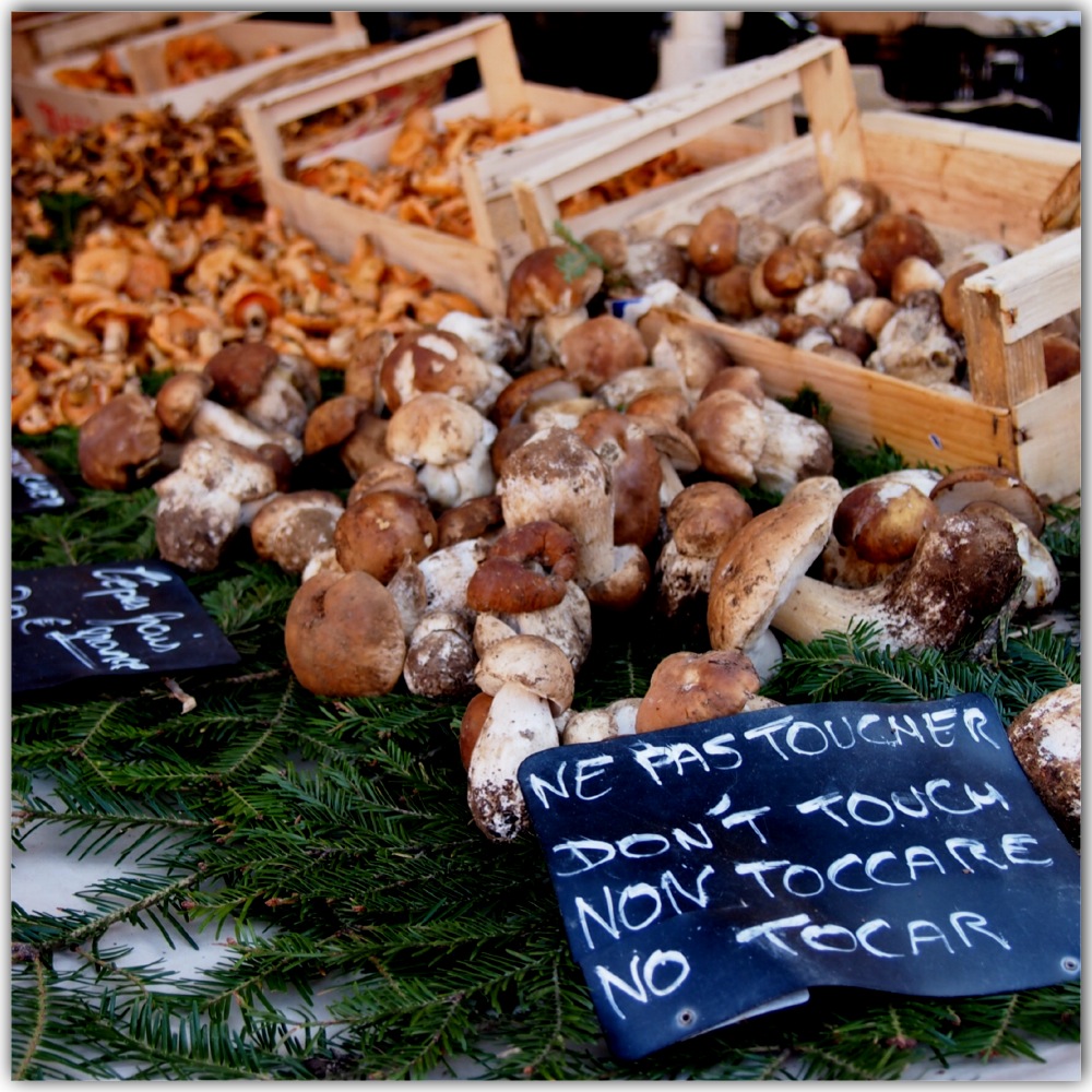 Näin ruokaharrastajan näkökulmasta Cours Saleya oli suorastaan kidutusta: toinen toistaan ihanampia raaka-aineita ja ruokatuotteita, etkä voi ostaa niitä tai kokkailla mitään. Tai ostaa juuri mitään edes tuliaisiksi, sillä meidän oli pakko selvitä paluumatkasta käsimatkatavaroilla. Kyllä tuli kirottua typerät nesterajoitukset! Onneksi jotkut asiat kulkevat kevyesti, mahtuvat pieneen tilaan eivätkä ole nesteitä: mausteet. Tosin suurin himotuksen kohde olisivat olleet tomaatit. Olisi kyllä ollut mielenkiintoista nähdä turvatarkastajan ilme, kun tyynen mustasta pikku-Samsonitesta olisi paljastunut muutama kilo tomaatteja!