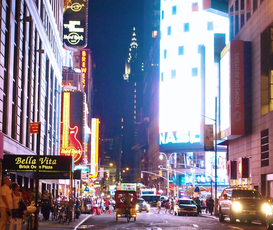 Ja paikka tosiaan oli mitä kätevin: metrolla pääsi ihan hotellin kulmalle ja suurin osa linjoista kulki hotellin lähistöltä. Times Squaren valot hohtivat kulman takana, mutta oma katumme oli suhteellisen rauhallinen. Liikuimme taas todella paljon ympäri kaupunkia, joten keskeisen sijainnin myötä pystyimme usein hyppäämään suoraan oikeaan metroon eikä vaihtamiseen kulunut turhaa aikaa.