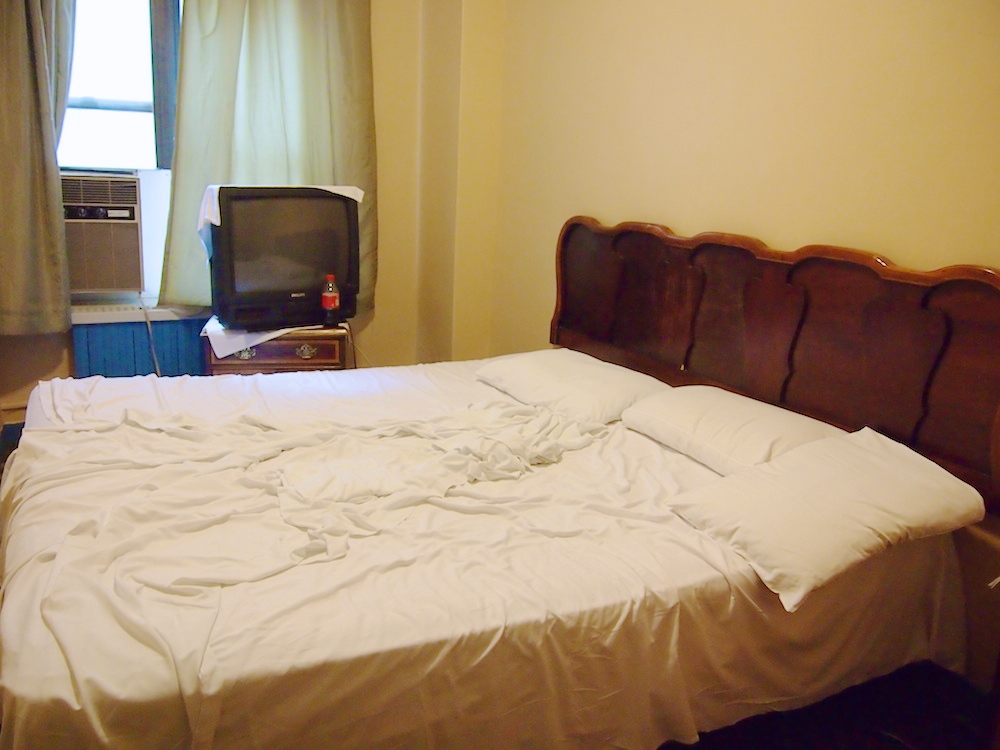 Itse hotelli on selvästi suosittu budjettimatkailijoiden keskuudessa (olen myös huomannut myöhemmin, että moni muukin tuttu on majoittunut juuri tässä hotellissa). Huone oli odotetusti vähän kulahtanut ja vanha, mutta en löytänyt siitä mitään sen kummempaa moitittavaa. Ikkunan edessä oli paksu verho, jota ei tarvinnut raottaa kuin kerran, sillä mitään nähtävää toisella puolella ei ollut. Huone oli ihan ok kokoinen ainakin verrattuna edellisen reissun Brooklynin hotelliin ja kylppärissä kaikki toimi. Hotellin hissit olivat suosituimpina aikoina aina varattuja, joten kipusimme portaita lukuisia kerroksia.