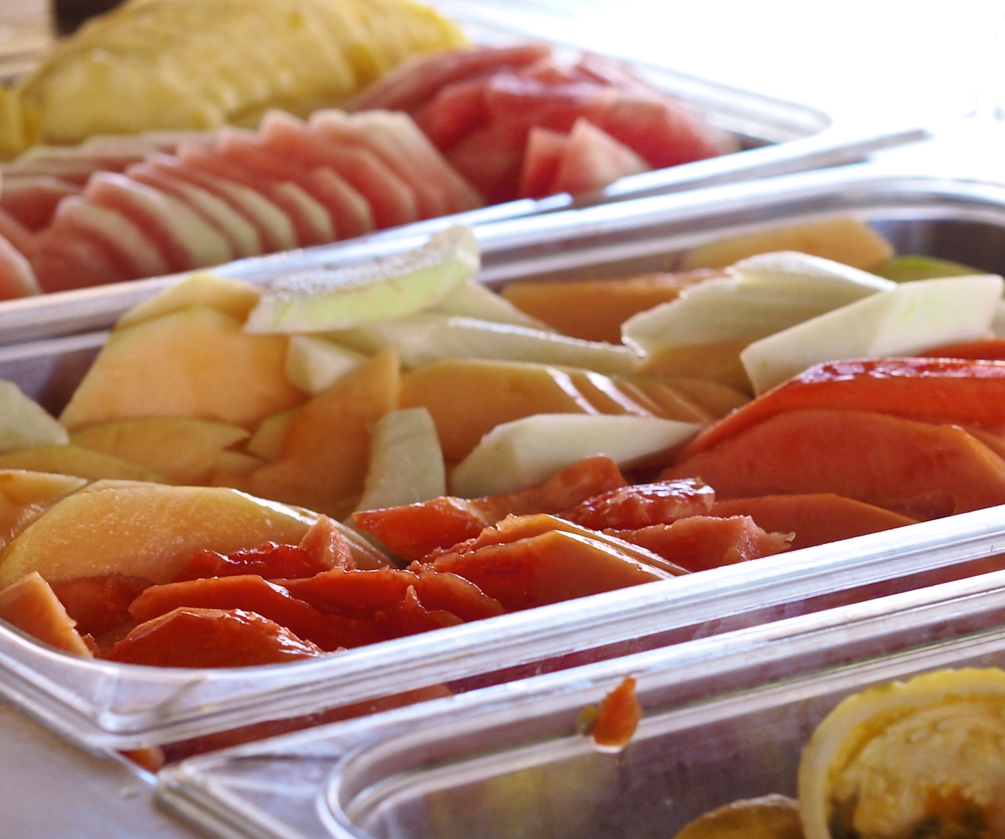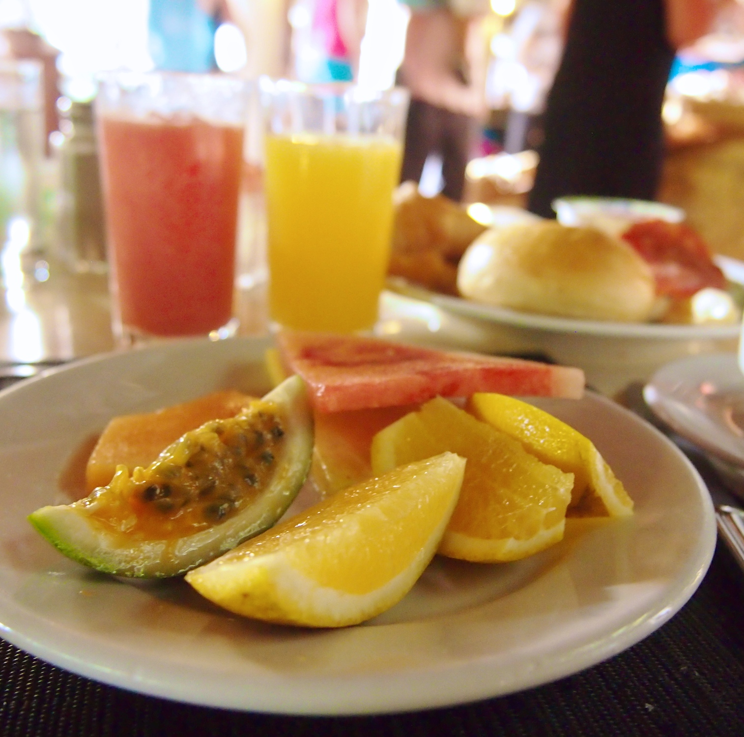 En ole arkiaamuisin yhtään aamupalaihminen, paitsi lomalla ja erityisesti hotelleissa. Karibialla tarjottavassa buffetaamiaisessa parhaimpia puolia on tietenkin ihanat tuoreet hedelmät. Ja cafe con leche! Meidän hotellissa oli myös tarjolla tuoreita mehuja ja smoothieita, joita valmistettiin koko ajan tarjoilupöydän vieressä. Aamupalalla olisi luonnollisestikin saanut kustomoidun munakkaan täytebuffetista valittujen lisukkeiden mukaan, mutta harmi kyllä juuri kun viimeisenä aamuna olin päättänyt tankata oikein kunnolla ja syödä munakkaan, niin jono oli liian pitkä!