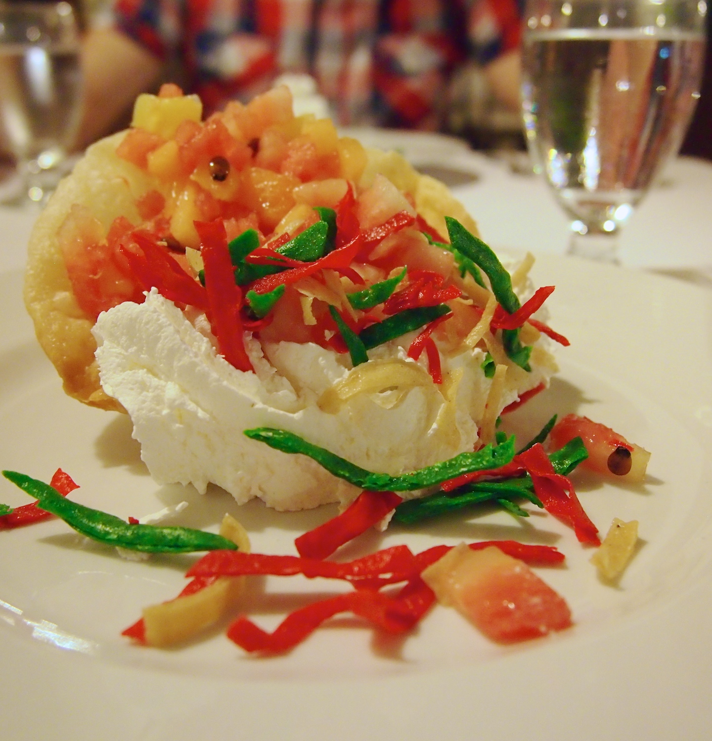 Annokset näyttivät pääsääntöisesti kauniille ja minusta oli hauska nähdä, miten suht arkisista meksikolaisita ruuista saisi hienompia, valkoisille pöytäliinoille ja viinilasin viereen sopivia versioita. En ollut koskaan aikaisemmin syönyt meksikolaista ruokaa niin hienossa ravintolassa.