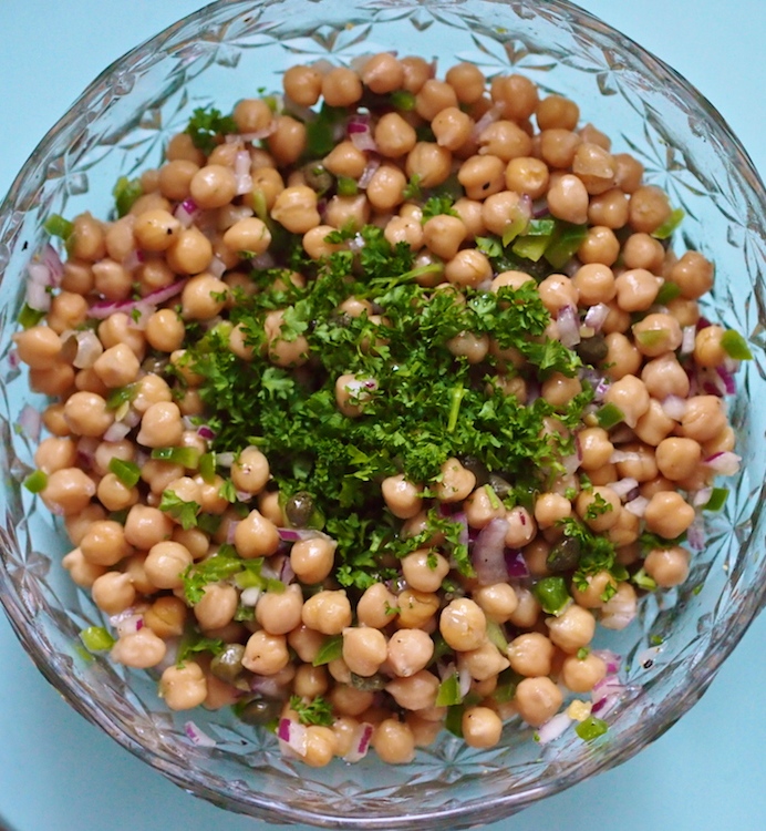 Nam nam ja nam! Ja tuo kikhernesalaatti (tunnistinkohan oikein?) näyttää semmoselta mitä vois heleposti syyä myös arabialaisessa keittiössä, siitä kertoo ainakin tuo reilu persiljan (sama ko äskösessä) käyttö!