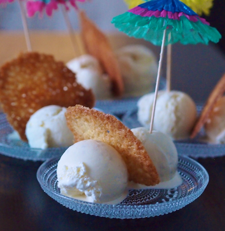 Eilen meillä oli päivällisvieraita ja katselimme tietenkin edellisen reissumme kuvia (teimme pikaisesti pienen 70 kuvan kokoelman, sillä kukaan, siis KUKAAN ei jaksaisi katsoa nelinumeroisia lukuja kenenkään toisen reissukuvia). Teemaan sopi hyvin karibialainen ruoka, joten ostin kasan kanaa ja pussillisen jauhobanaaneja ja kaivoin friteeraussiivilän kaapista. Jälkiruokaa inspiroi piña colada, jota pitää tropiikissa juoda aina yksi per reissu. Miksipä ei tuliaisrommia voisi lorauttaa hieman jäätelöön!