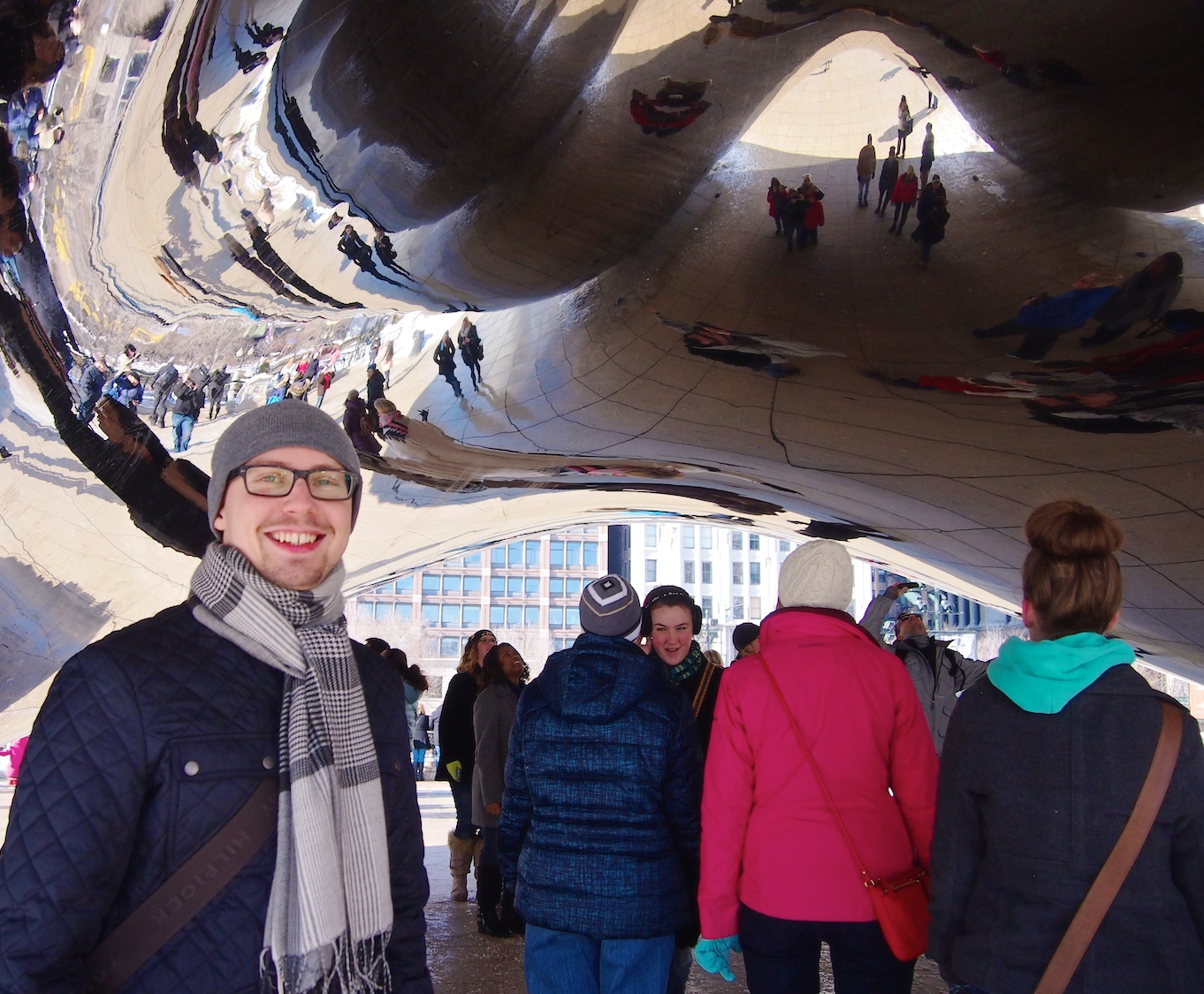Ja sitten se Cloud Gate eli The Bean, Anish Kapoorin veistos AT&T Plazalla. Sen lisäksi, että itse taideteoksesta pitää ottaa kuvia, on ihan pakko kuvata itseään beanin heijastumasta ja lisäksi kaikkia muita, jotka kyseisiä kuvia ottavat. Saisivat kyllä pestä sen seuraavaksi kerraksi!