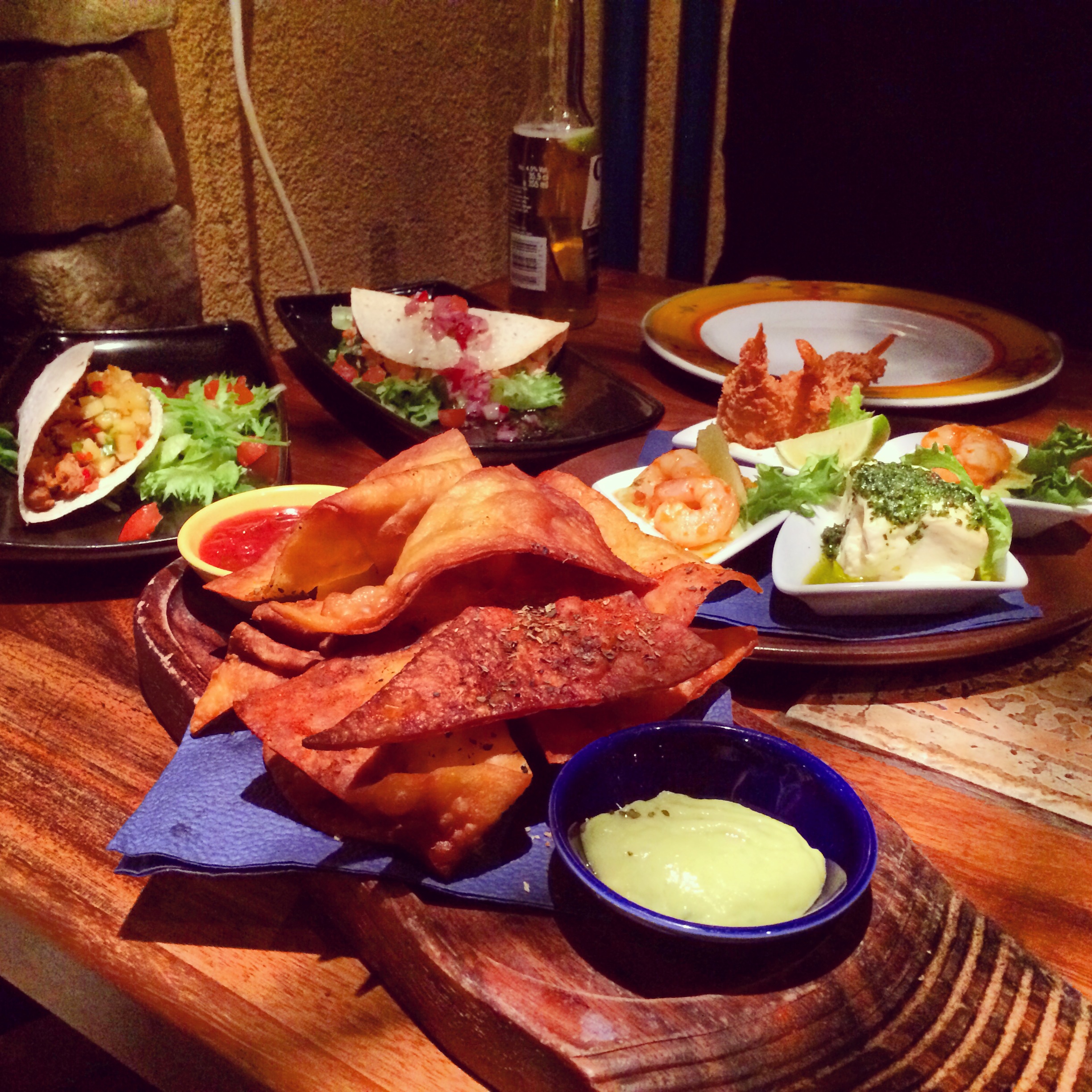 Jotain reissun aikana piti syödäkin ja pääsin herkuttelemaan mm. Mayan meksikolaisilla ruuilla. Koska en osannut päättää mitä haluan, tilasin pöydällisen pelkkiä alkupaloja. Nam!