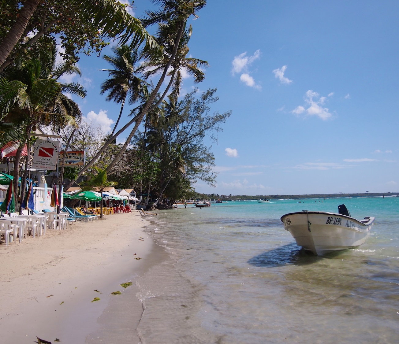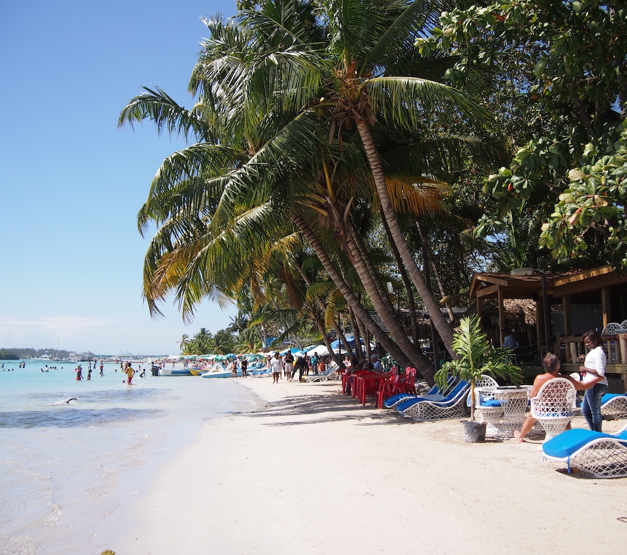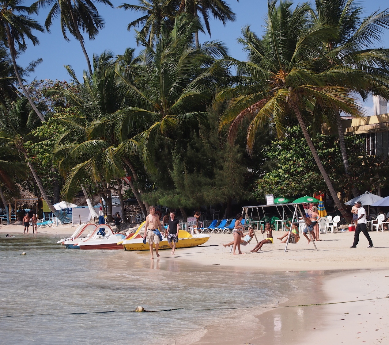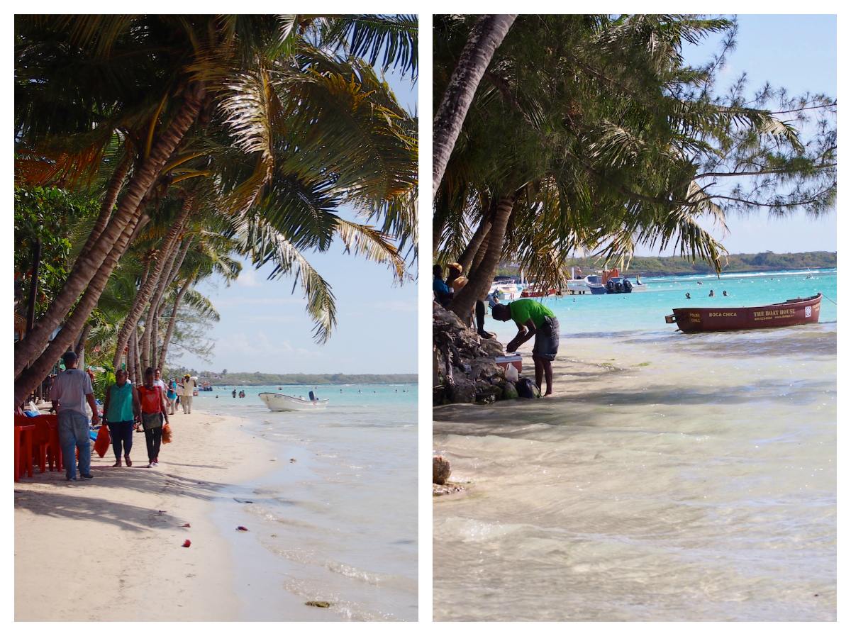 Boca Chica on Santo Domingon lähellä, muutaman kymmenen kilometrin bussimatkan päässä oleva pieni rantakaupunki. Sen katukuva on samalla lailla hauskan värikäs kuin muuallakin, mutta se juttu on kuitenkin pitkä hiekkaranta. Ranta on hienohiekkainen ja kirkas vesi syvenee todella loivasti. Mutta se juttu ei ole periaatteessa edes se rantakaan, vaan se paikallinen meininki.