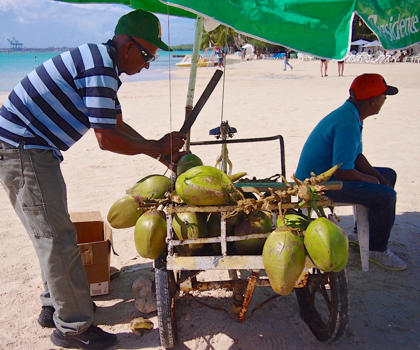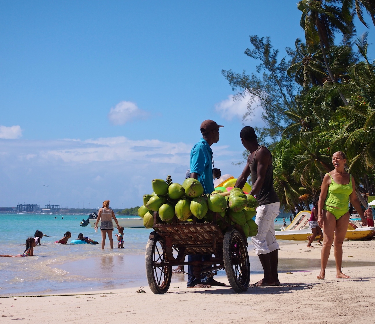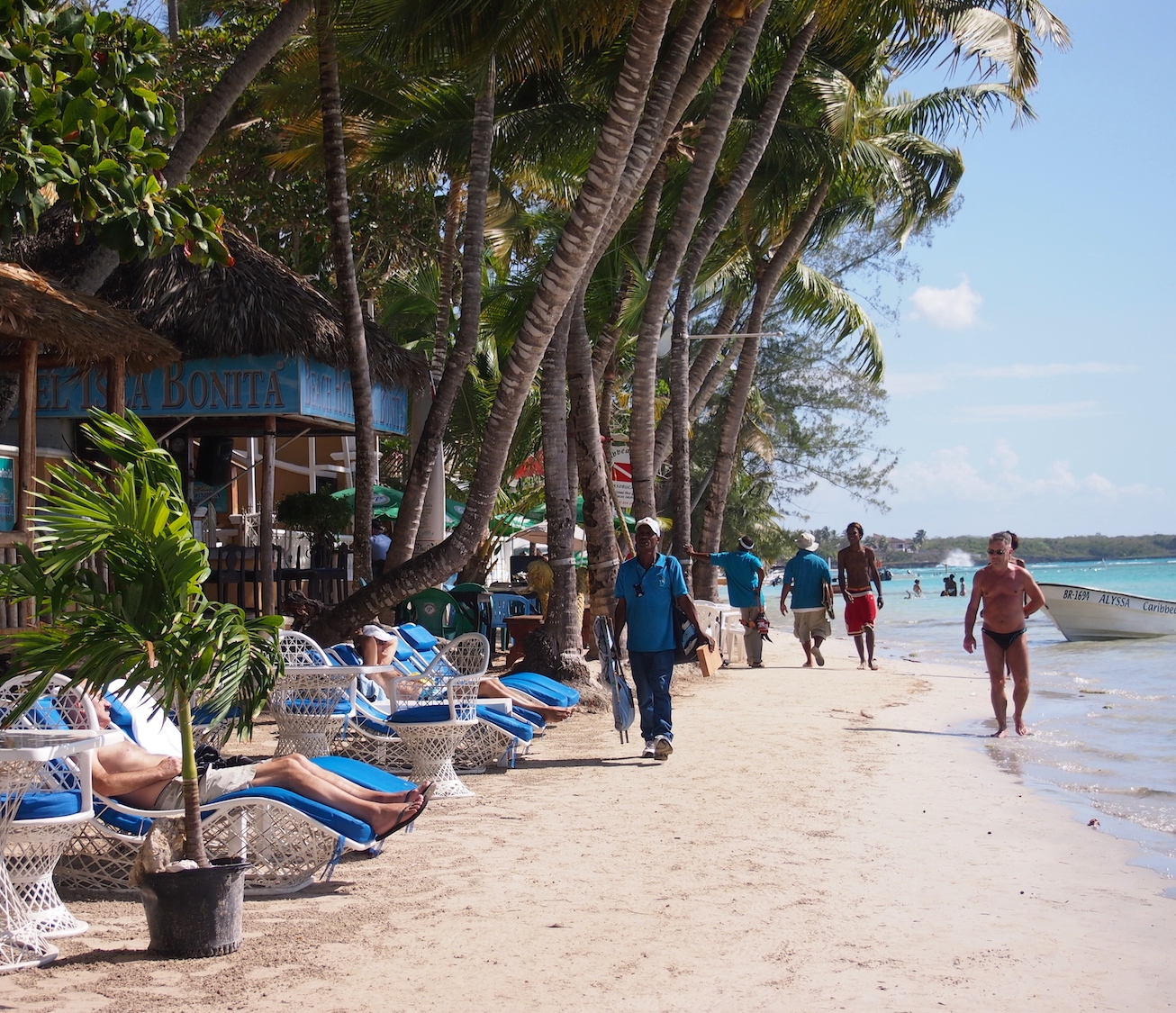 Boca Chica on Santo Domingon lähellä, muutaman kymmenen kilometrin bussimatkan päässä oleva pieni rantakaupunki. Sen katukuva on samalla lailla hauskan värikäs kuin muuallakin, mutta se juttu on kuitenkin pitkä hiekkaranta. Ranta on hienohiekkainen ja kirkas vesi syvenee todella loivasti. Mutta se juttu ei ole periaatteessa edes se rantakaan, vaan se paikallinen meininki.