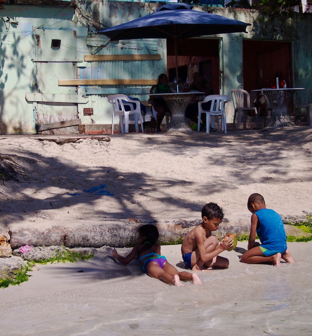 Fiilis on parhaimmillaan viikonloppuisin, tai ainakin sunnuntaisin (kävimme itse sunnuntaina ja tiistaina). Paikalliset saapuvat rannalle suurin joukoin ja käsite perhe kattaa vähintään puolet suvusta. Rannalla vietetään koko päivä, syödään hyvin ja juodaan tilkka rommia, sekä tanssitaan ja lauletaan silloin kun siltä tuntuu. Oli mieletöntä seurata rantaravintolassa, kun iso porukka saattoi hyvän biisin kuultuaan alkaa hytkymään ja laulaamaan ihan tuosta noin vaan. Ja musiikki, se soi rannalla viikonloppuisin täysillä.