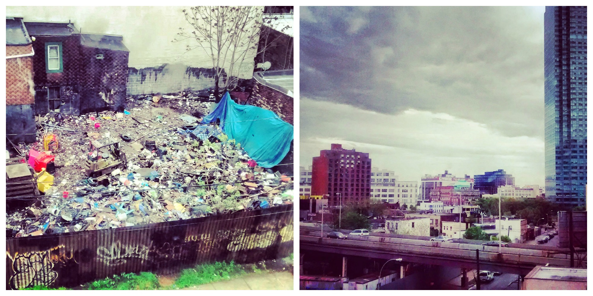 Löysimme hotellimme (Comfort Inn) välittömästi, sillä se sijaitsee vain korttelin päässä metroasemasta. Heitimme kamat huoneeseen, joka on siisti, motellimainen ja pieni, mutta ei niin pieni kuin joku kerta sitten Brooklynissä. King size sänky vie tuttuun tapaan valtaosan huoneesta, mutta sänkyhän on se huoneen olennaisin asia, joten mikäs siinä. Huoneen ikkunasta on näkymä Manhattanin suuntaan, mutta alaspäin katsoessa avautuu ihana törkyinen sisäpiha/kaatopaikka.