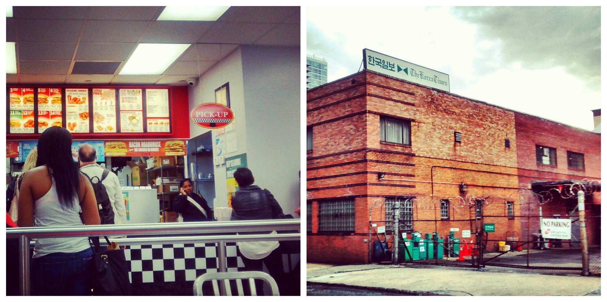 Olimme suunnitelleet käyvämme ensimmäisenä iltana lempparihampurilaisilla Madison Square Parkissa, mutta koska sää oli sateinen ja me väsyneitä, ei me jaksettu poistua Queensistä ja Long Island Citystä minnekään. Sen sijaan suuntasimme lähikauppaan, josta ostimme hieman juomista ja naposteltavaa ja paluumatkalla huomasimme hampurilaispaikan, joka ei ollut meille tuttu.