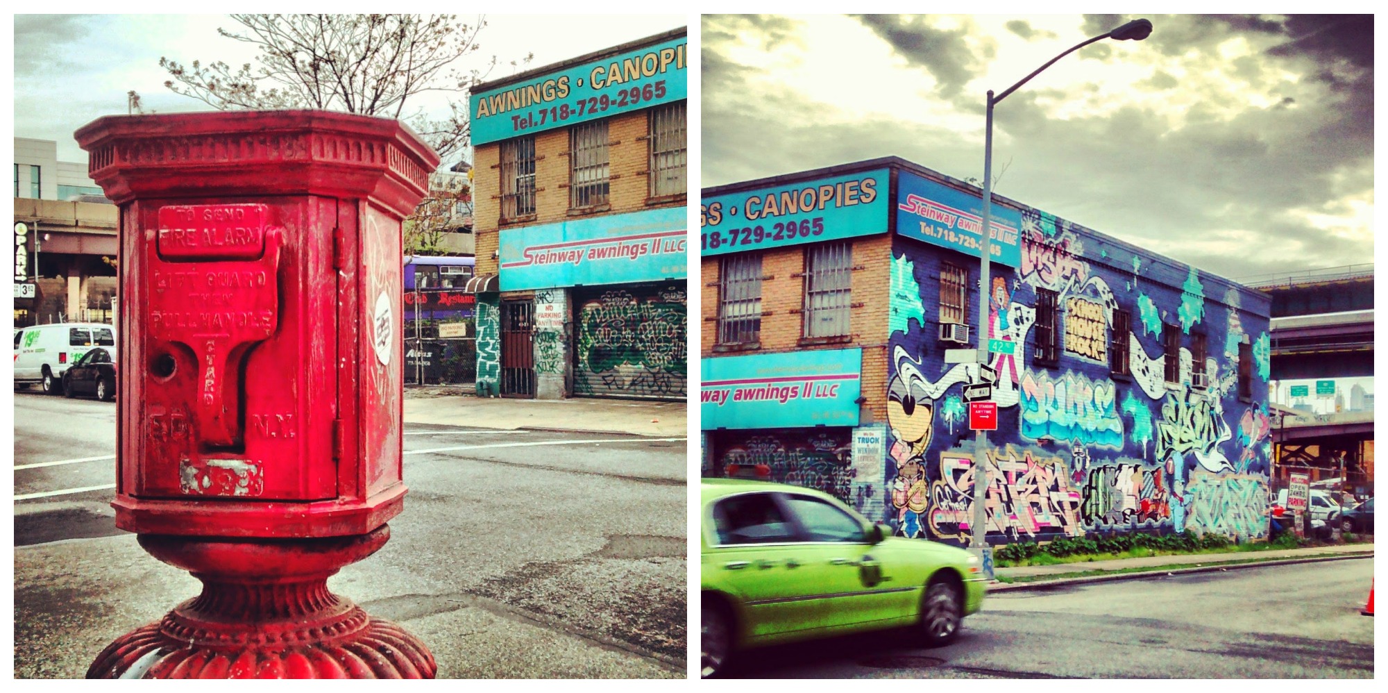 Näin nopealla vilkaisulla (yksi kierros korttelin ympäri) Long Island City eli LIC näyttää juuri meidän paikalle: hieman rähjäistä, edullista, kitsiä, vanhoja teollisuusrakennuksia ja epämääräisiä graffiteja. Metro kolistelee yläilmoissa. Manhattan kajastaa taivaanrannassa. Matkan ei pitäisi olla pitkä, joten ollaan kuitenkin suht lähellä kaikkea.