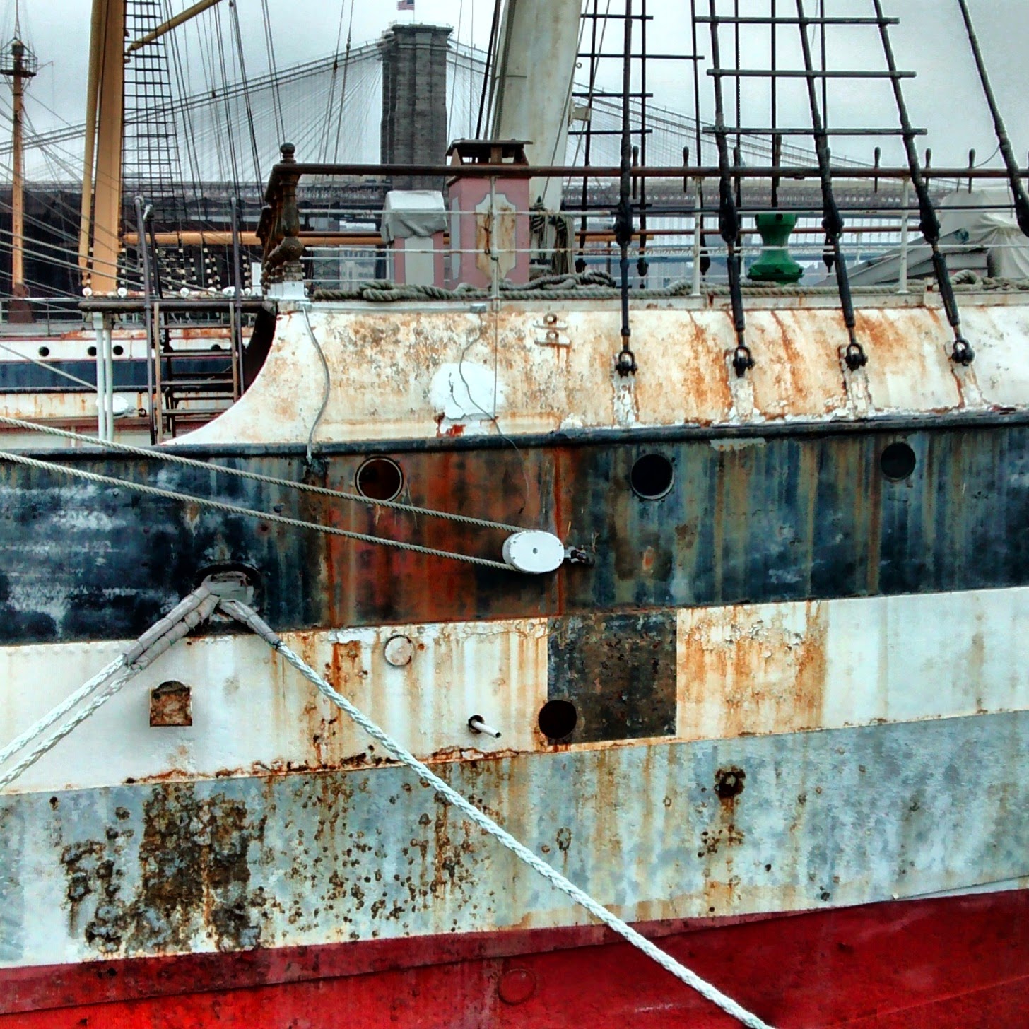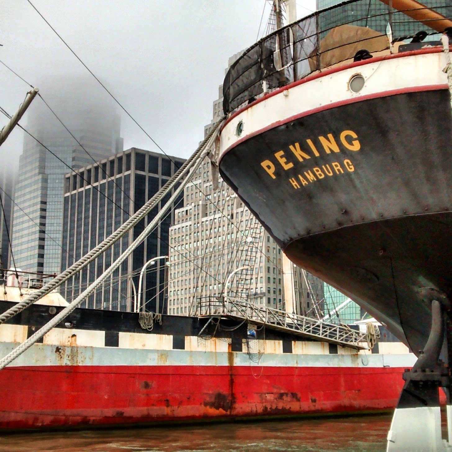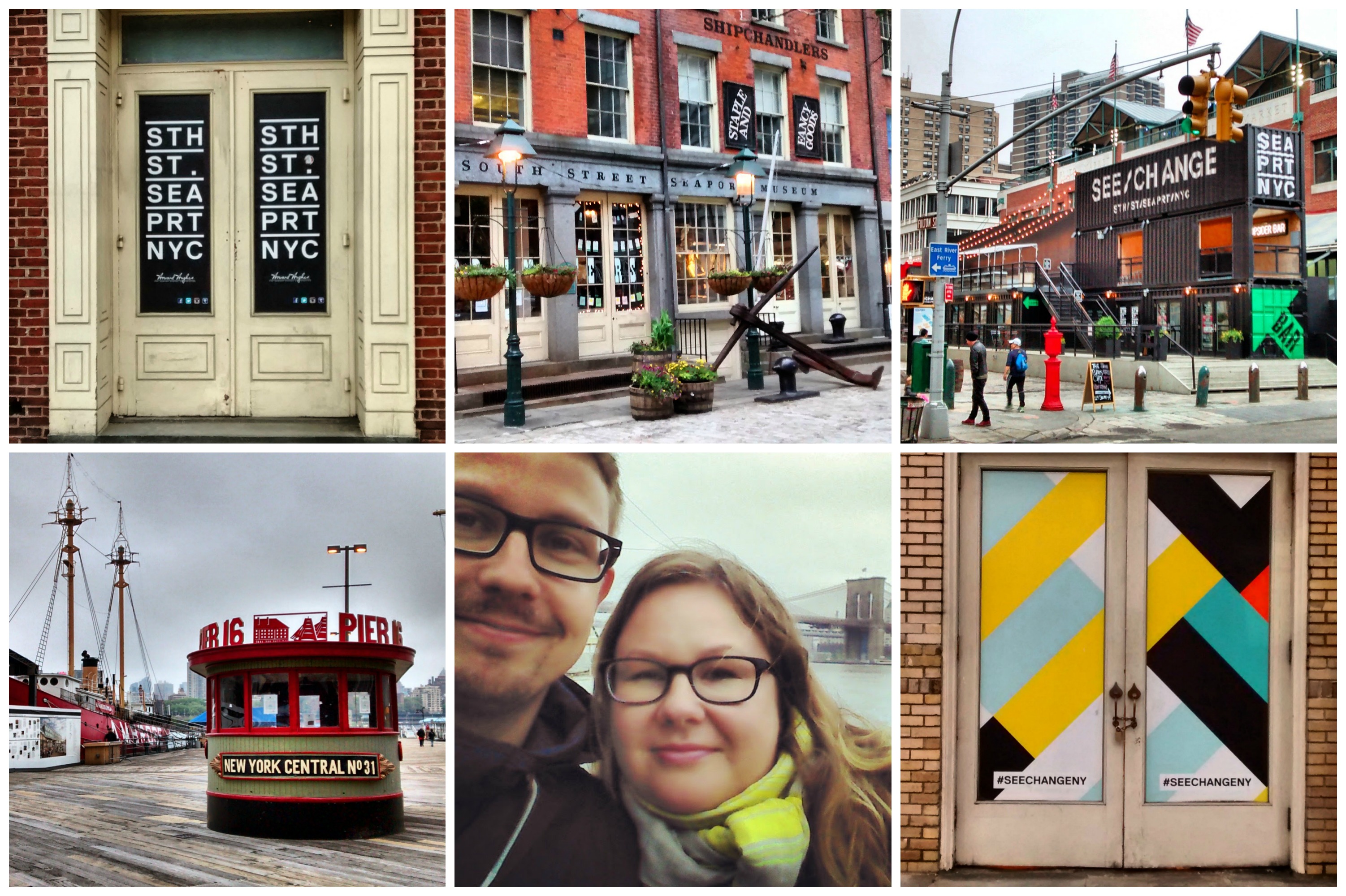 Illalla päätimme ottaa satamalaiturien kanssa uusiksi, sillä sade oli päättynyt siihen yhteen kuuroon. Suuntasimme South Street Seaportiin tunnetulle laiturille numero 16, missä aikaisemmin oli monista Brooklyn Bridge -kuvista tuttu ravintola/ostari. Nyt kyseinen rakennus oli lähes purettu! Mutta kivoja kuvia alueelta sai ja näkymät oli hienot sekä sillalle, Brooklyniin että Manhattanin usvaan katoaviin pilvenpiirtäjiin.